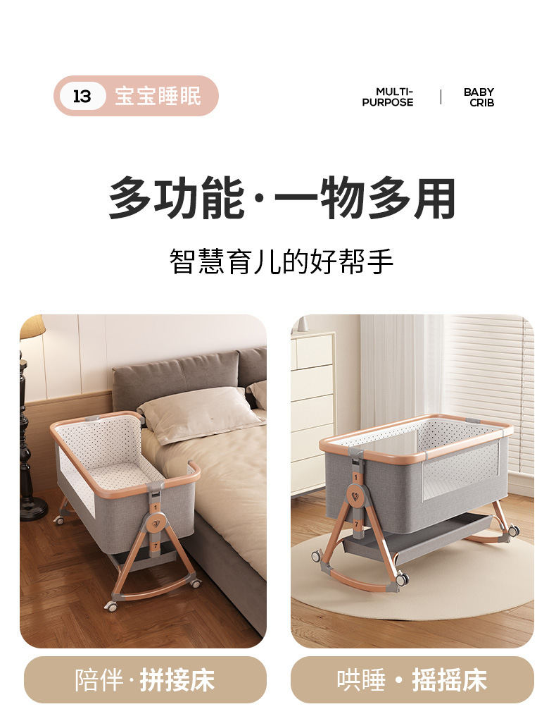 대형 침대 신생아 아기 침대 도매 이동식 휴대용 요람 침대 접이식 다기능 접합스토어 가기