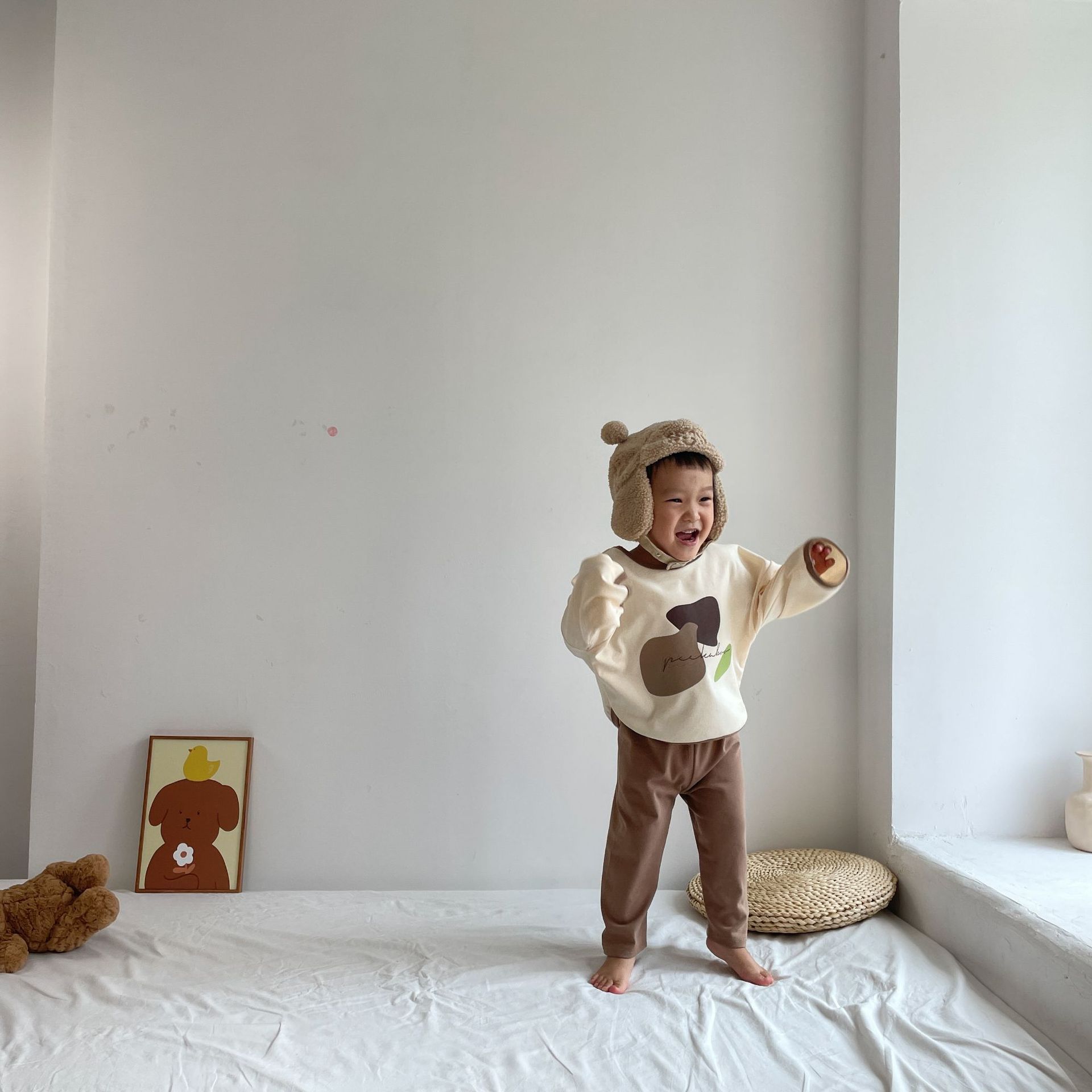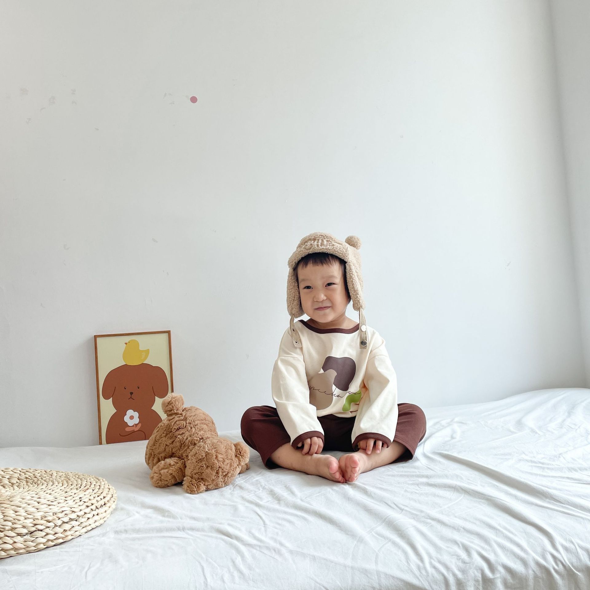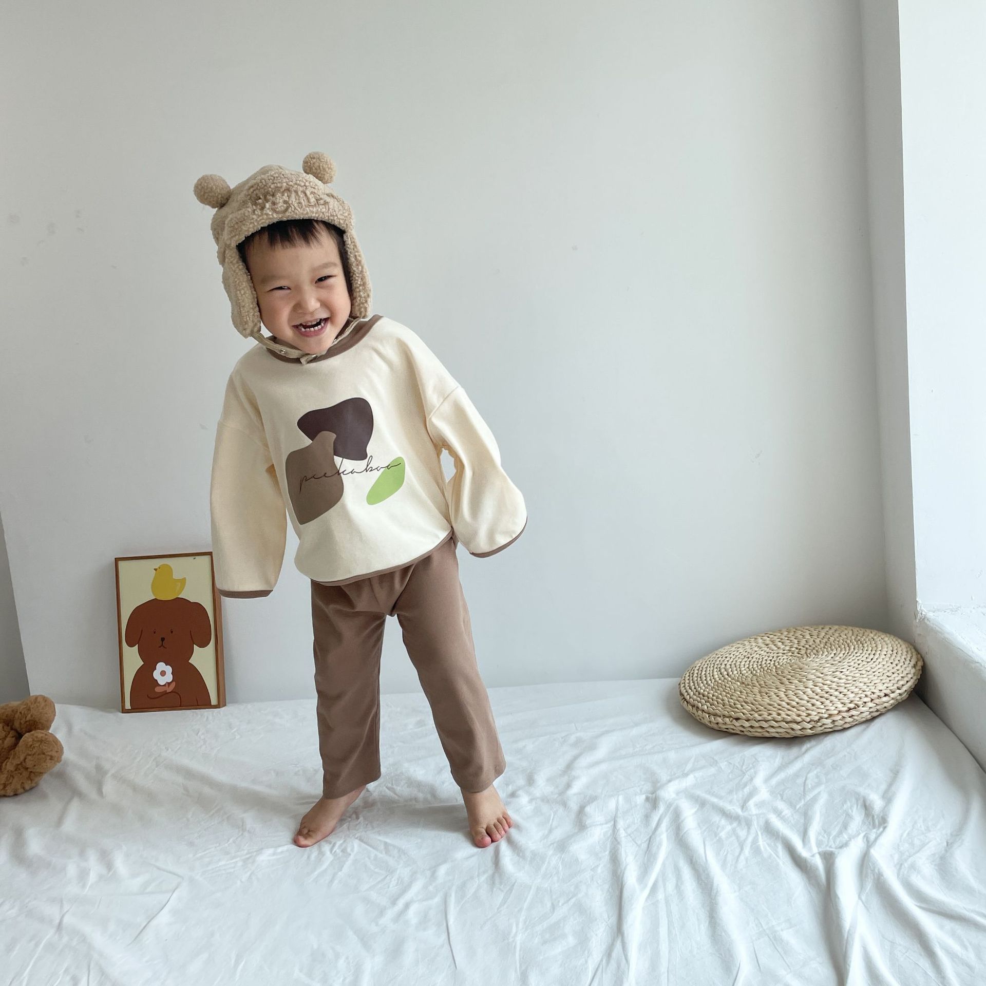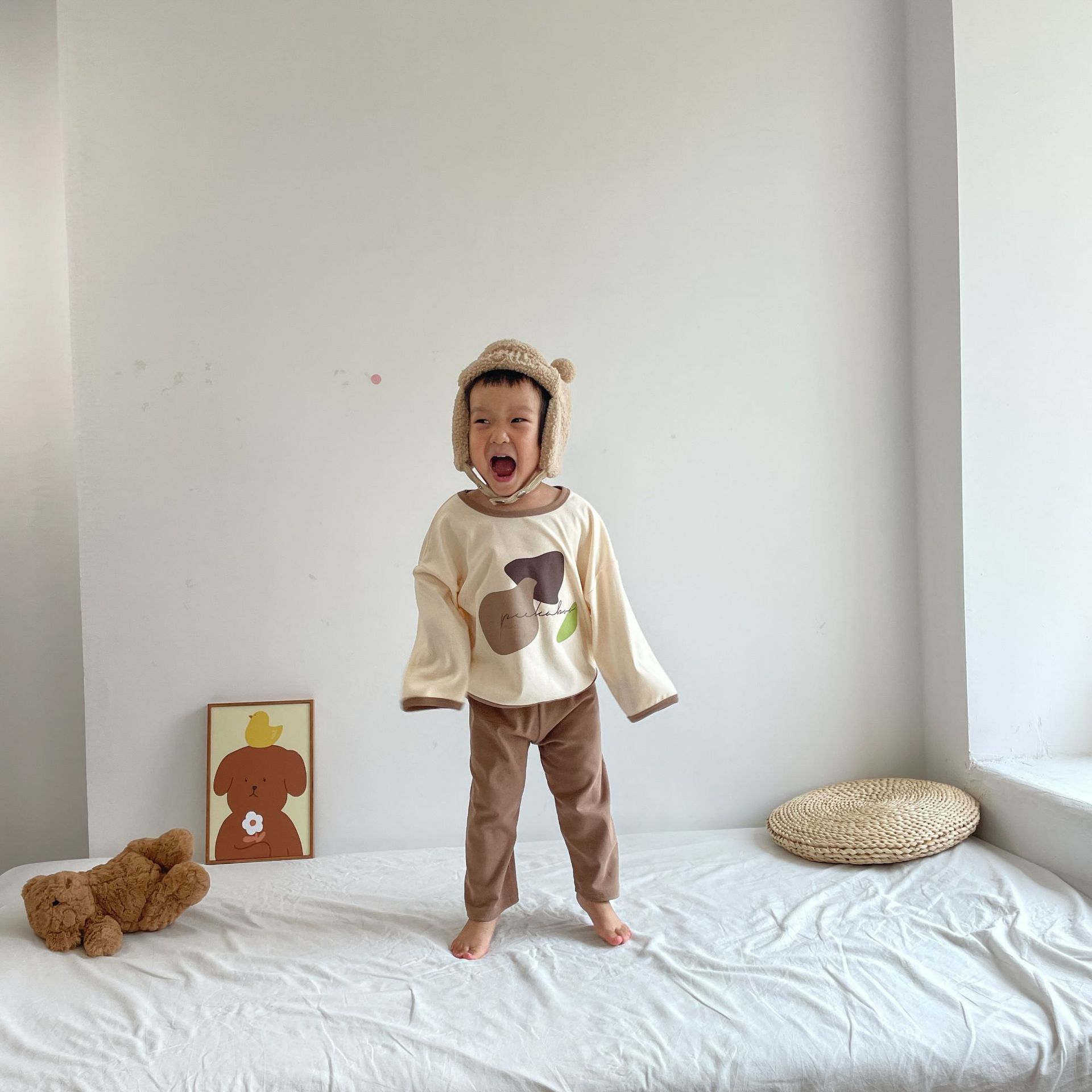 봄과 가을 소년 소녀 가정복 세트 아기의 서양 스타일 어린이 성격 유행 Instagram 스타일 가을 옷과 바지 잠옷 투피스 세트스토어 가기