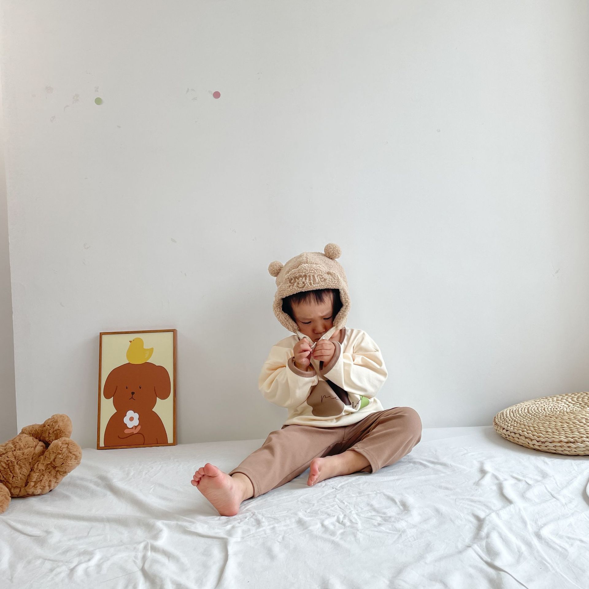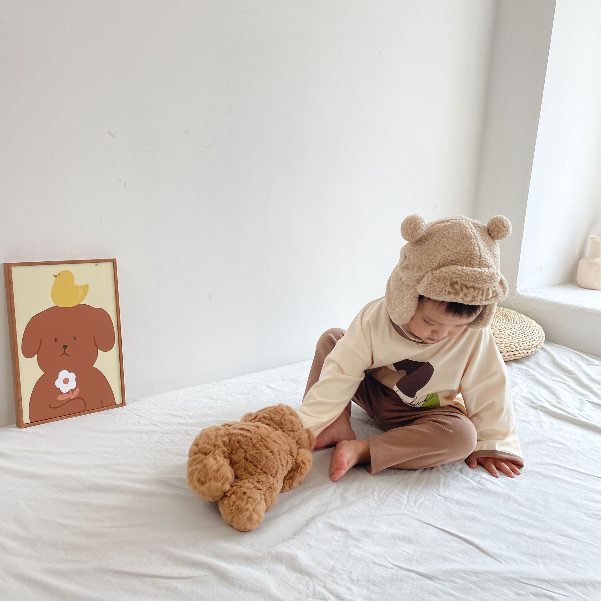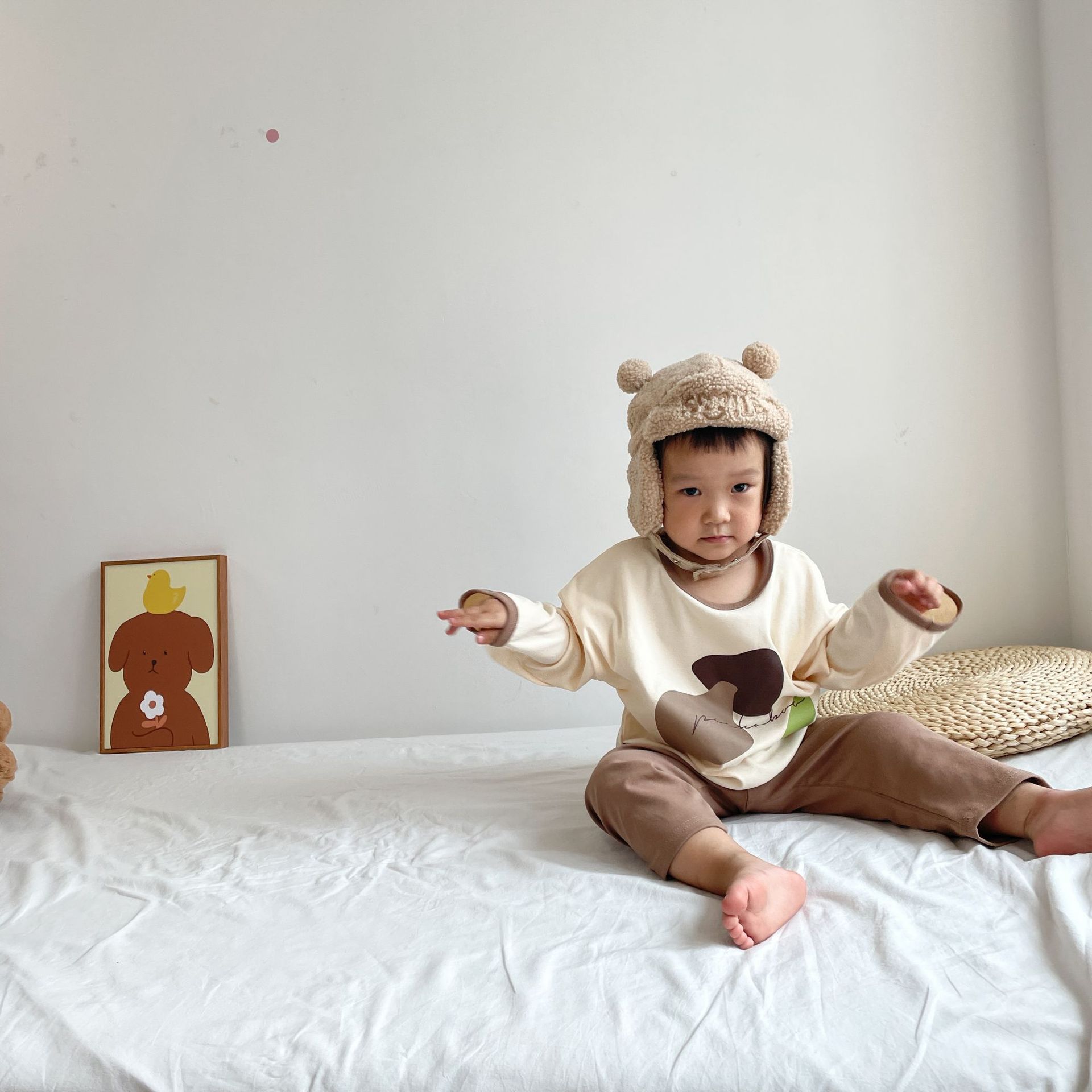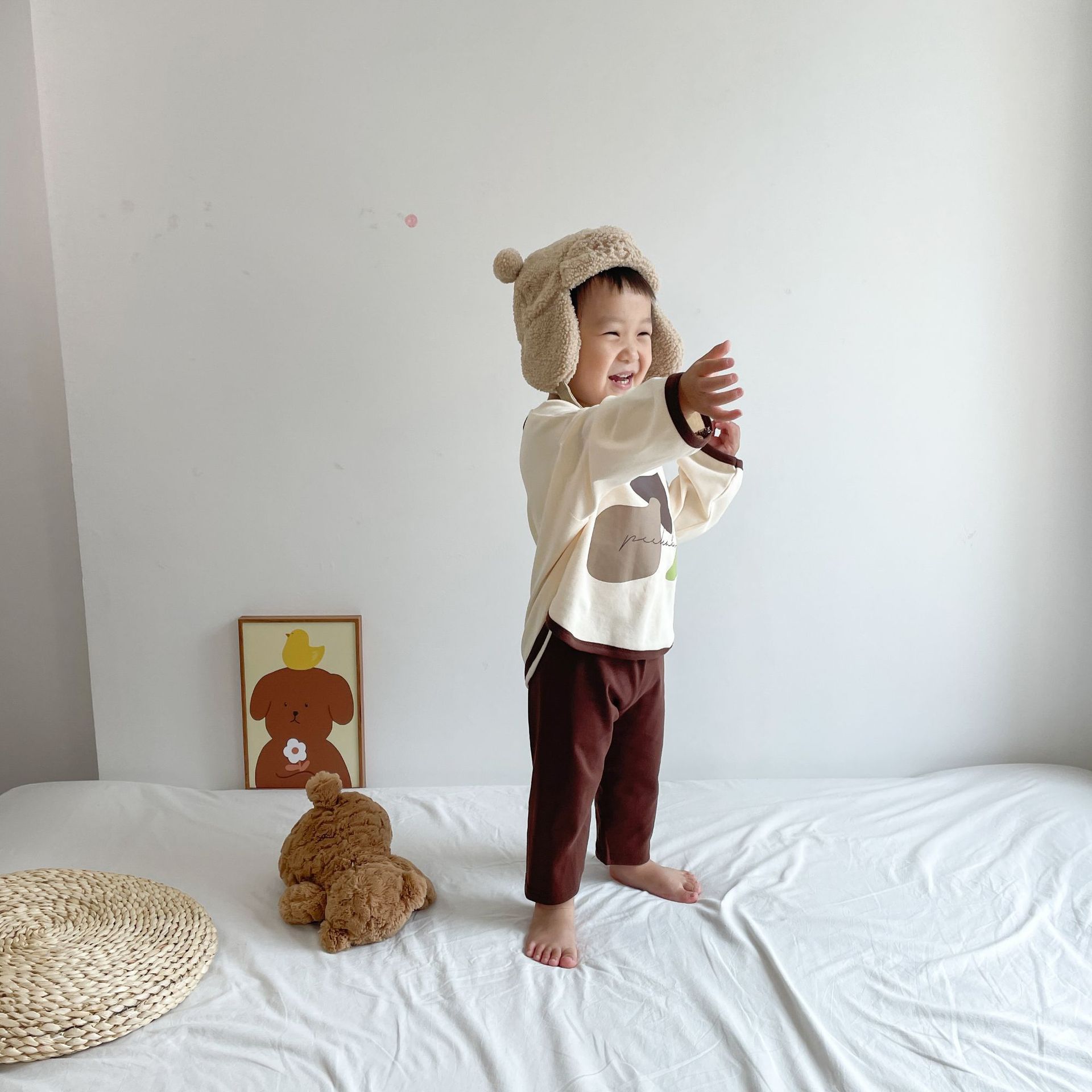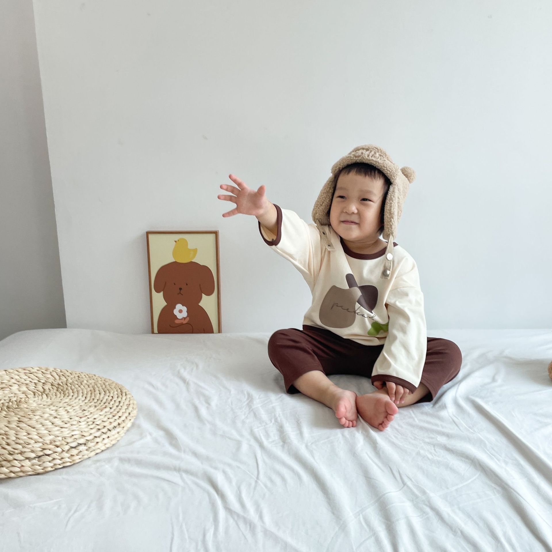 봄과 가을 소년 소녀 가정복 세트 아기의 서양 스타일 어린이 성격 유행 Instagram 스타일 가을 옷과 바지 잠옷 투피스 세트스토어 가기