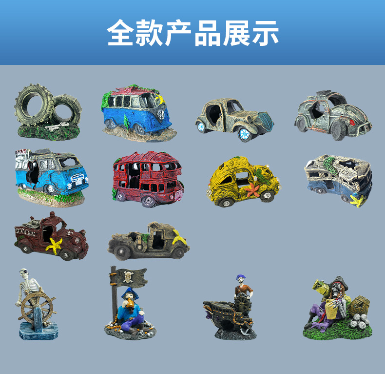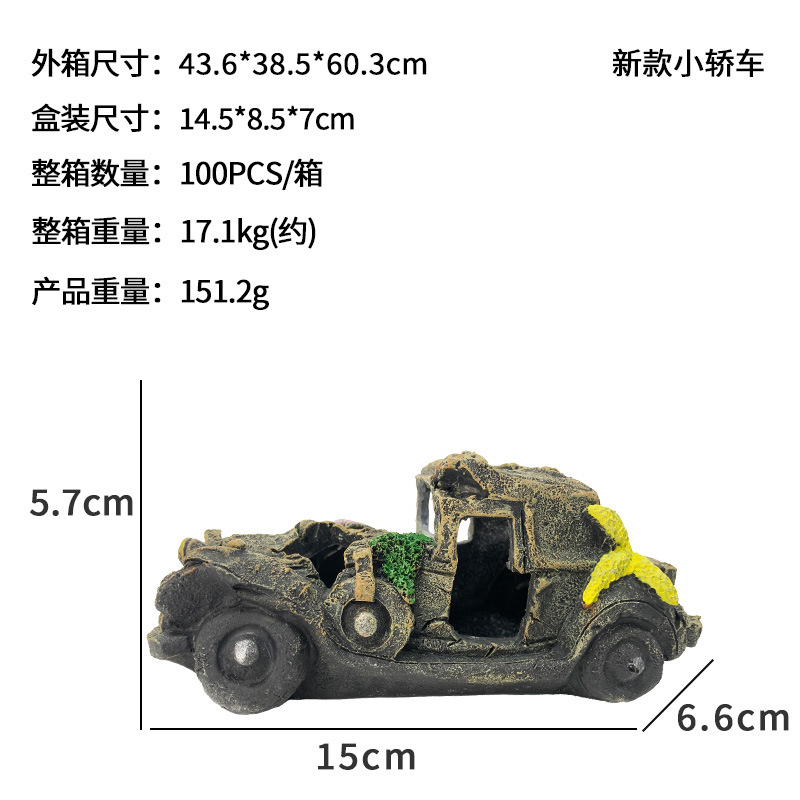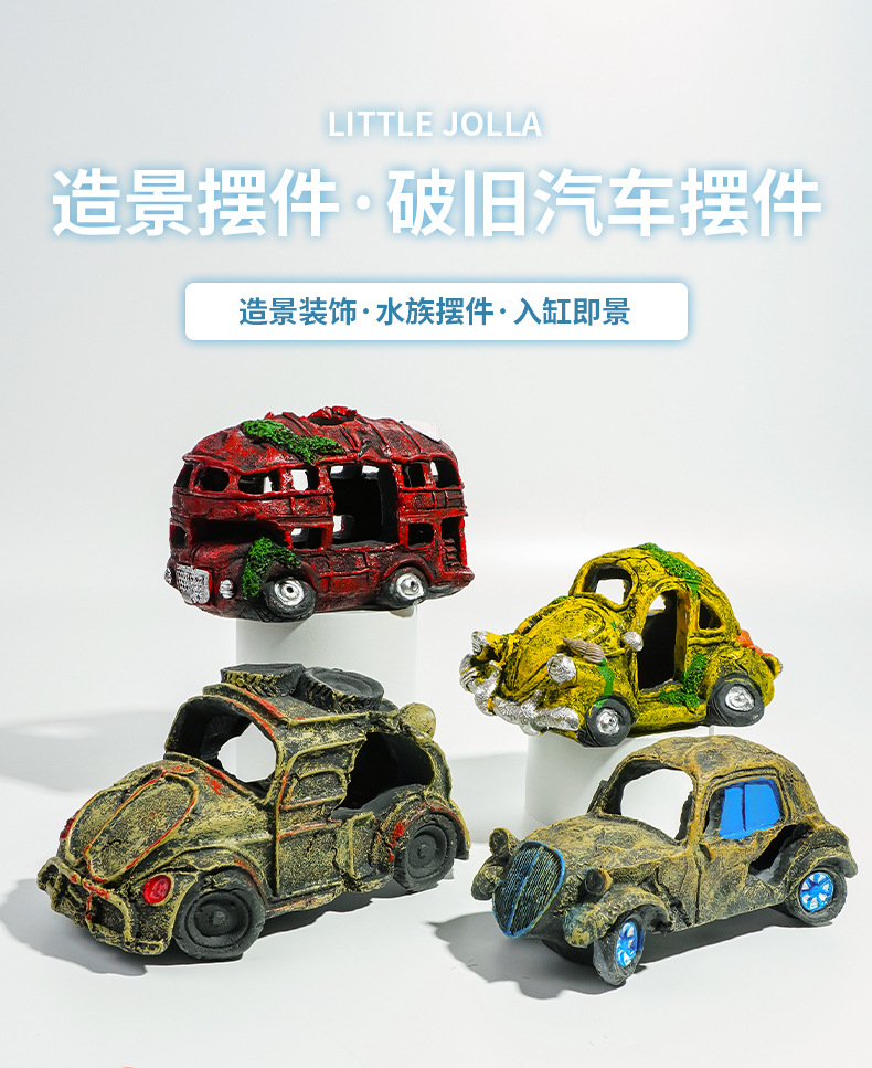 새로운 수족관 장식 자동차 유골물 어항 조경 레진 공예품 물고기와 새우가 숨는 장식품 오래된 버스