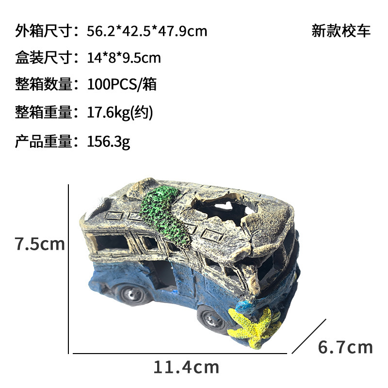 새로운 수족관 장식 자동차 유골물 어항 조경 레진 공예품 물고기와 새우가 숨는 장식품 오래된 버스스토어 가기