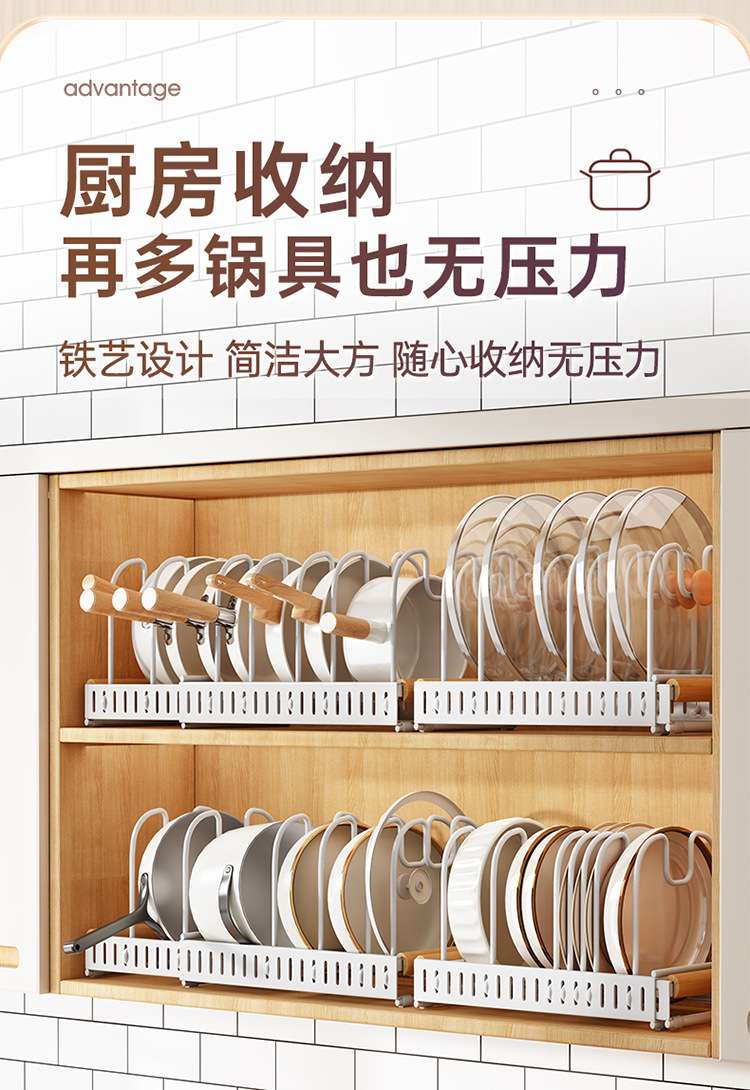 개폐식 가정용 범용 냄비 커버 랙 주방 조리대 냄비 보관 랙 캐비닛 냄비 랙 접시 랙 보관 랙