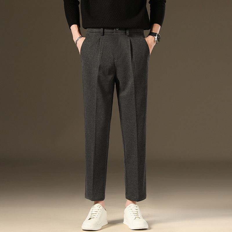 가벼운 럭셔리 겨울 모직 바지 남성 캐주얼 바지 남성 슬림핏 스트레이트 바지 브리티시 스트레치 캐주얼 바지 크롭스토어 가기