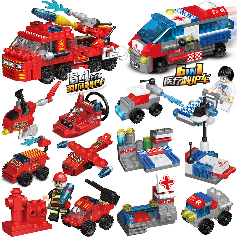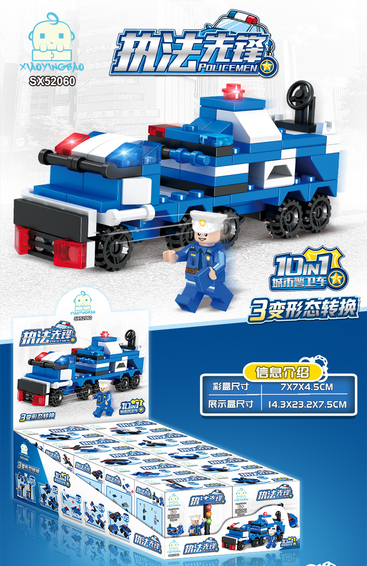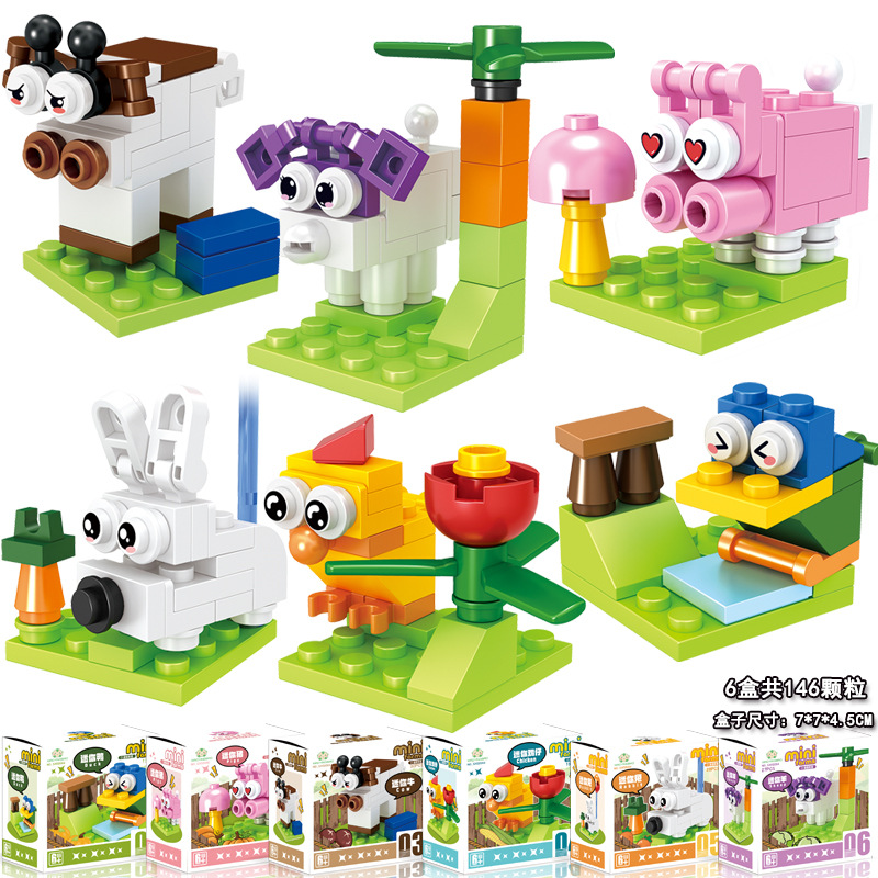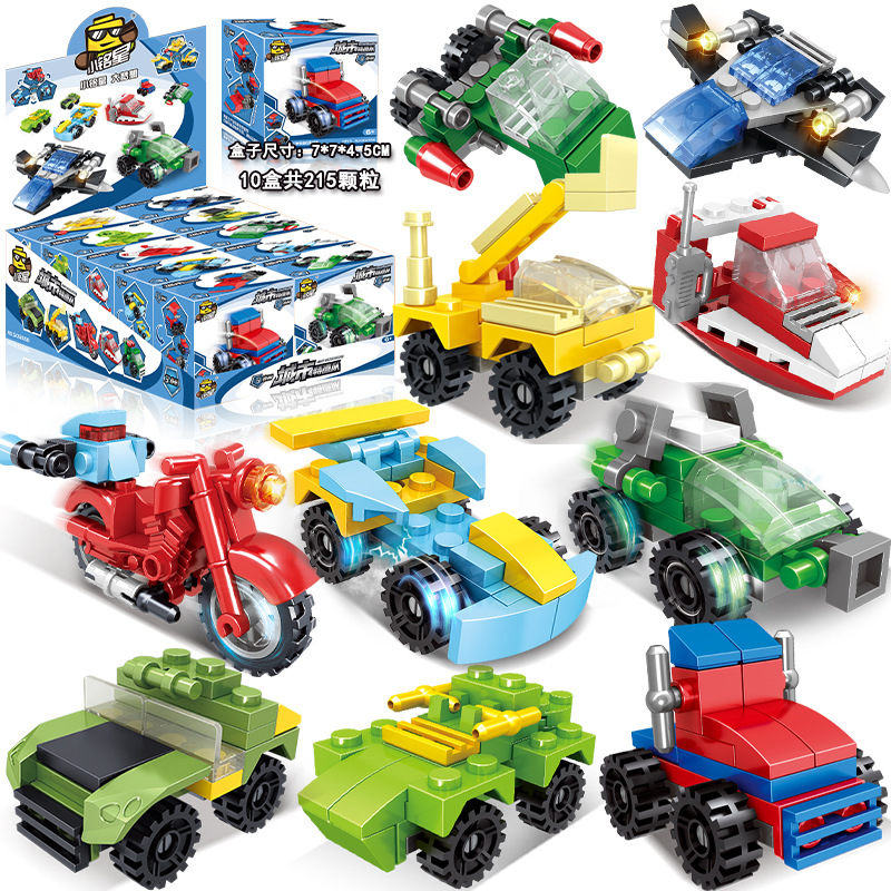 Xiaomingxing 빌딩 블록 퍼즐 작은 입자 조립 장난감 박스형 어린이 유치원 거리 마구간 가샤폰 기계 선물스토어 가기