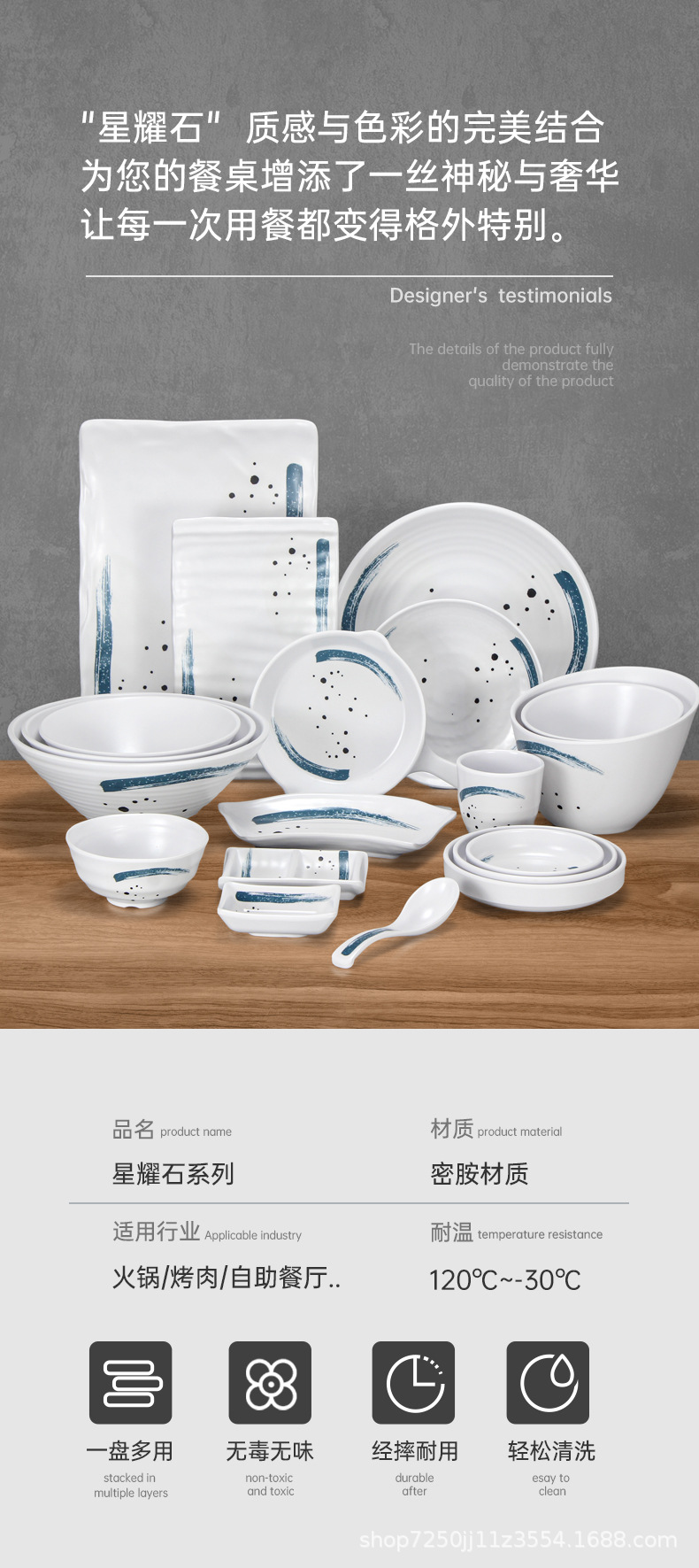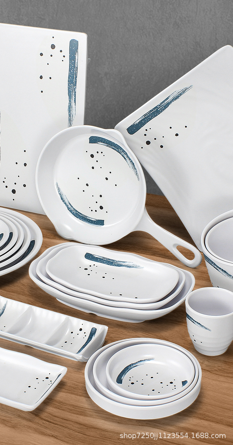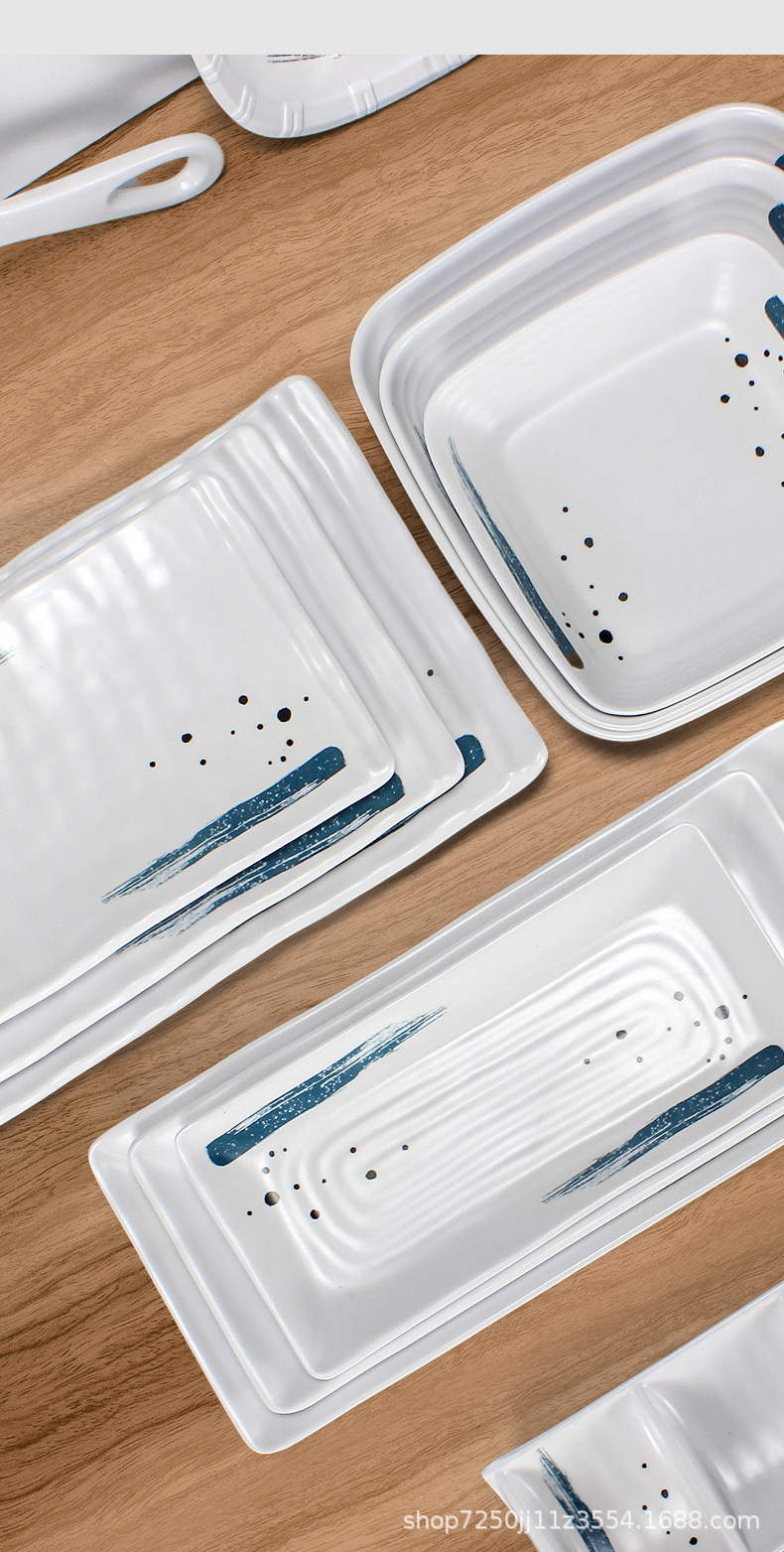 멜라민 모조 도자기 식기 바베큐 일본식 창작 특집 직사각형 평판 바베큐 레스토랑 반찬 냄비 접시 상업