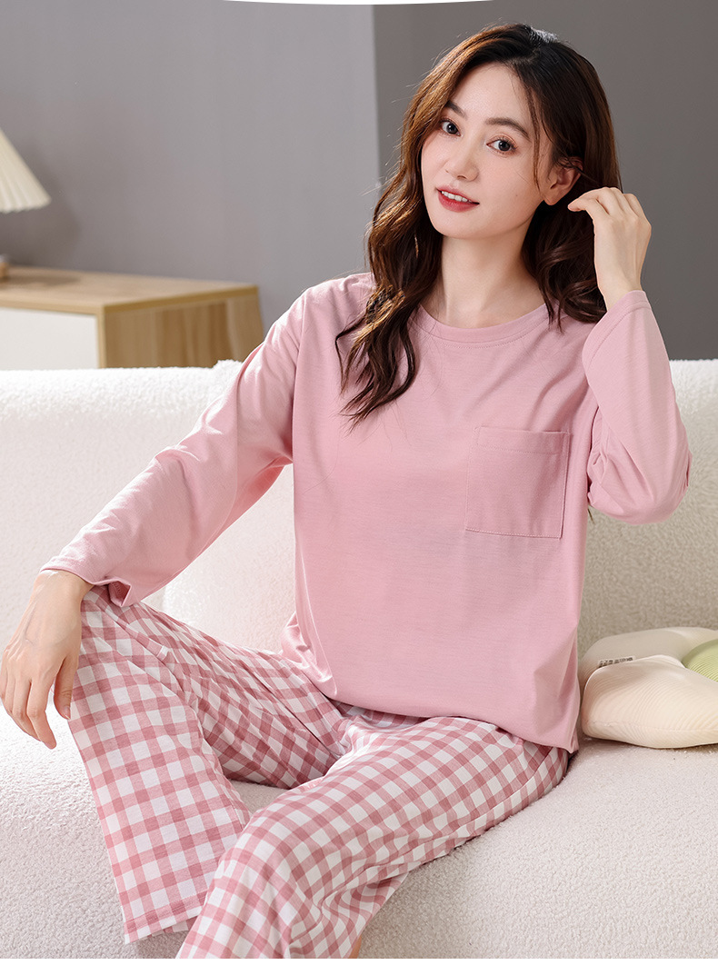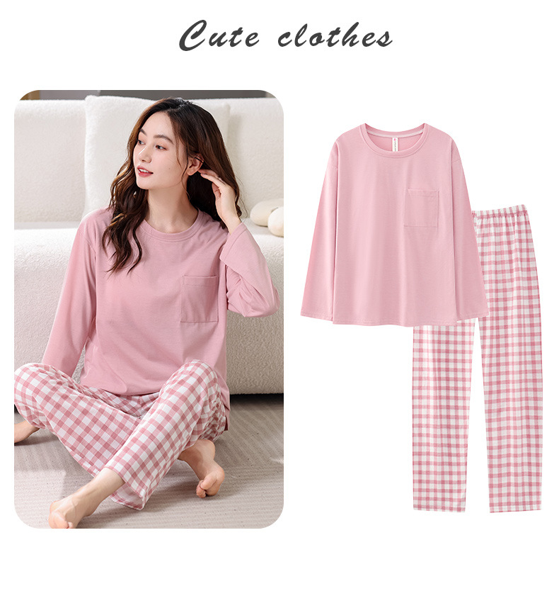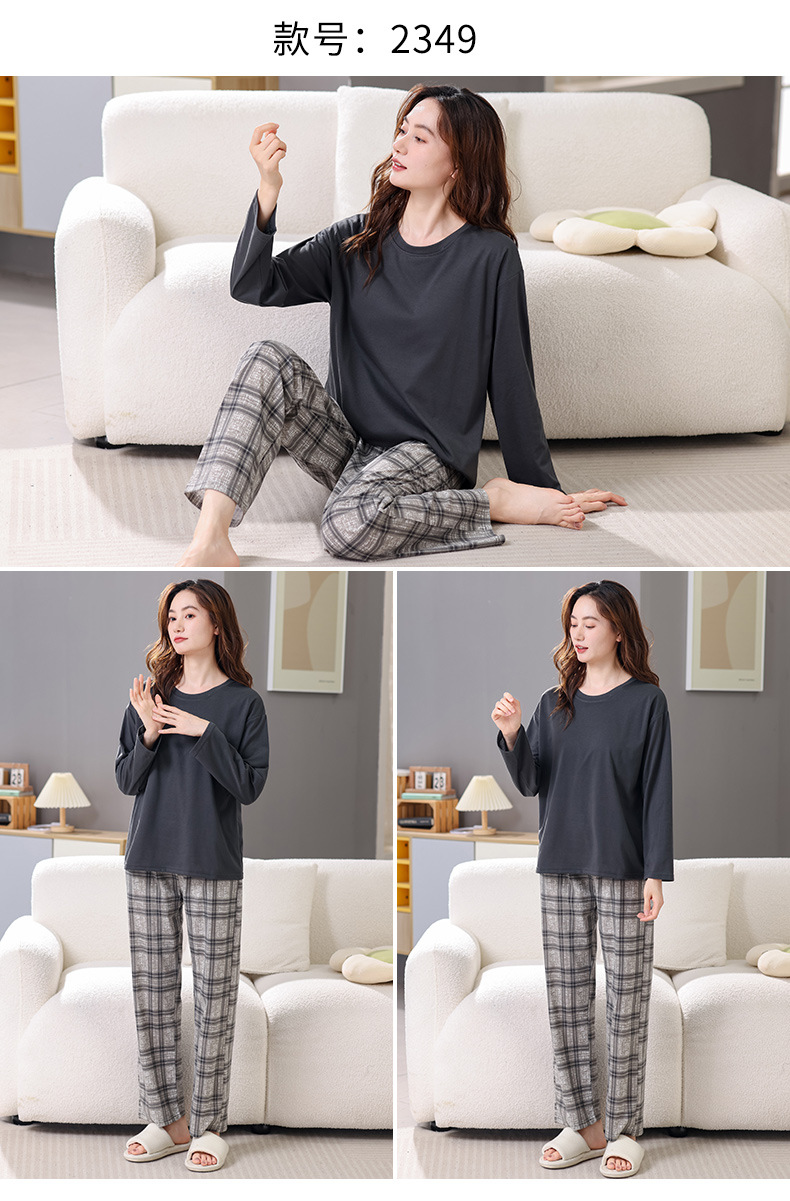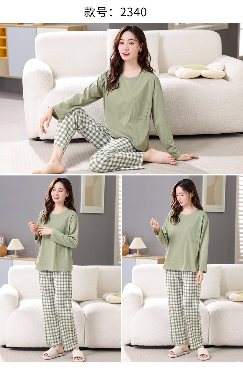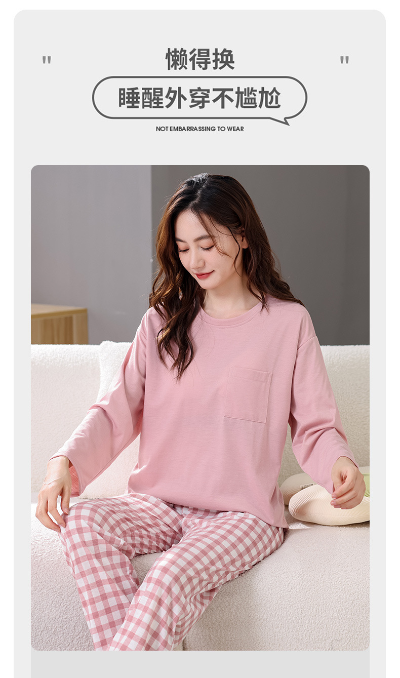 2025년 봄 가을 여성용 새 잠옷, 긴팔 바지, 가슴 패드가 있는 순면, 야외에서 입을 수 있는 올인원 가정복 세트스토어 가기