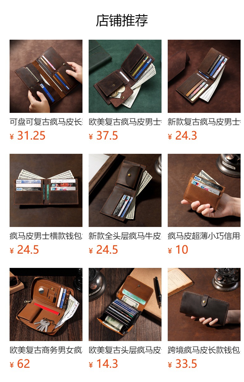 국경 간 Crazy Horse 가죽 남성용 지갑 내부 및 외부 정품 가죽 유럽 및 미국 스타일 달러 클립 남성용 짧은 1 층 소 가죽 지갑스토어 가기