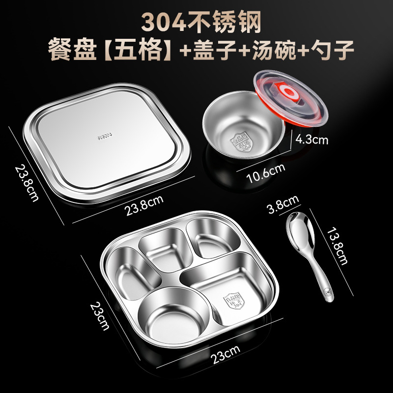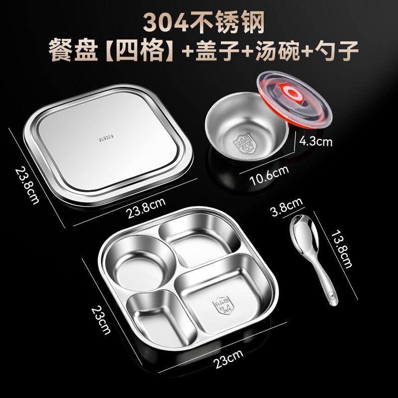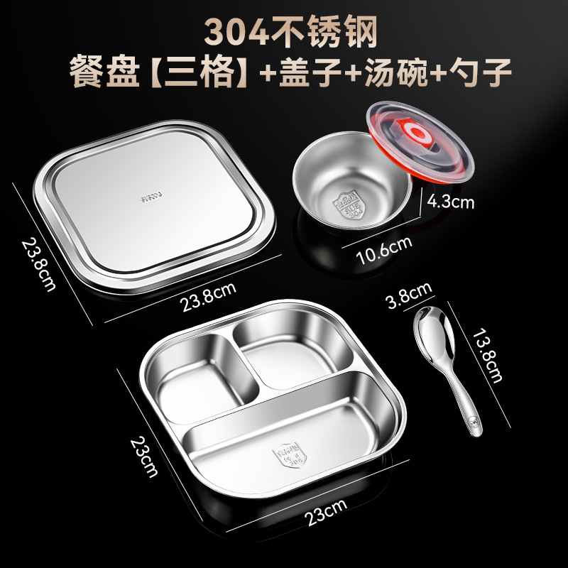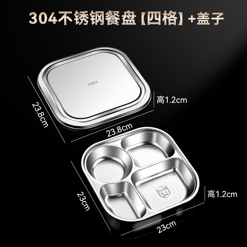 304 스테인레스 접시 어린이 칸 도시락 유치원 아기 두껍고 깊어진 도시락 초등학생용 뚜껑 포함