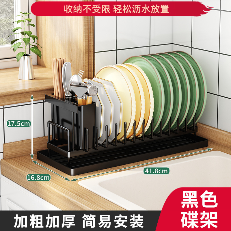 • 젓가락 홀더가있는 접시 랙 블랙