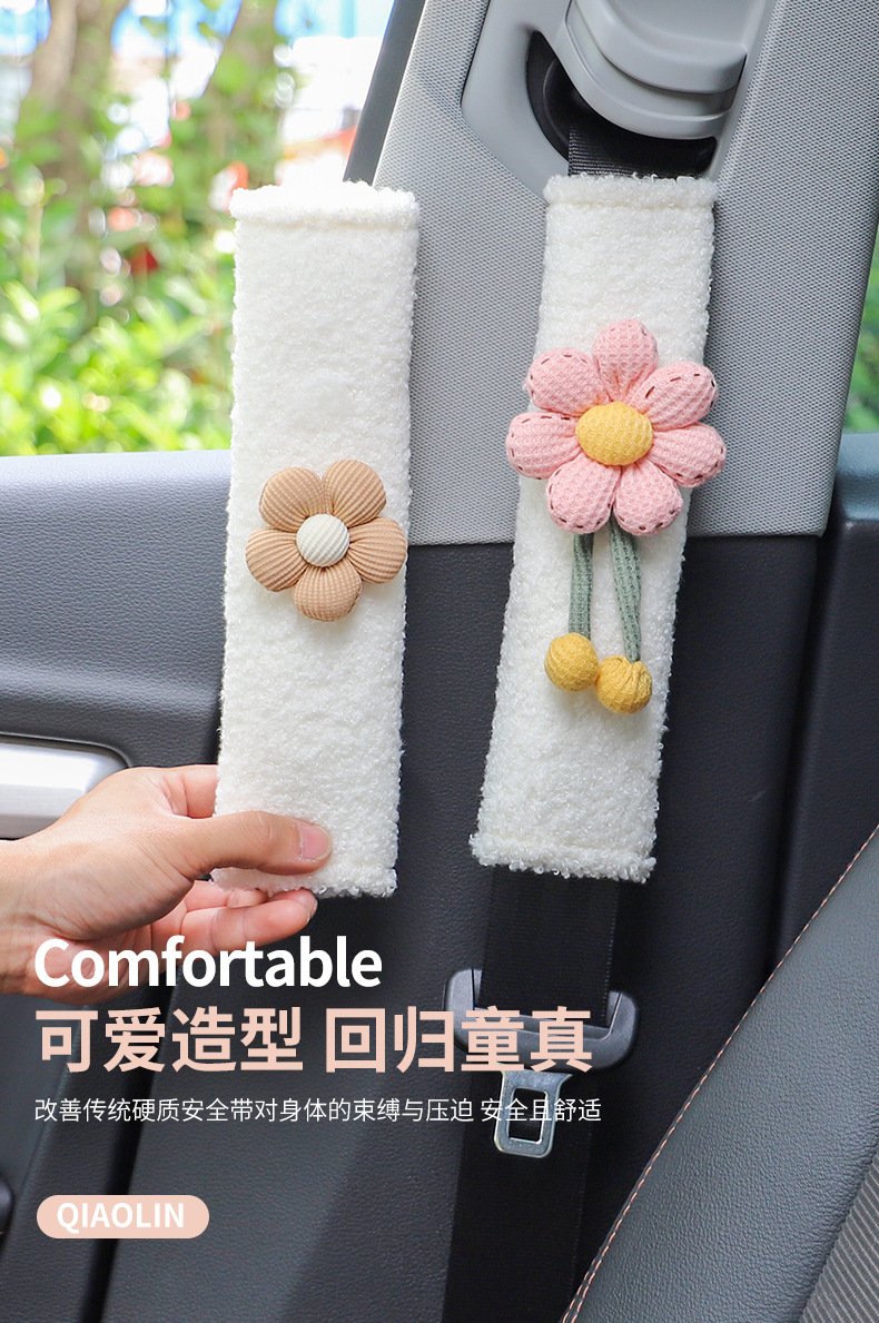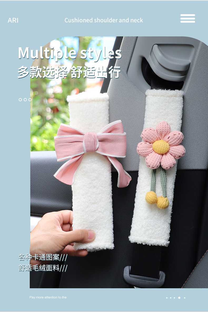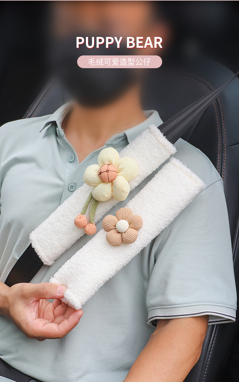 자동차 시트 벨트 어깨 커버 만화 양고기 벨벳 자동차 안전 벨트 보호 커버 귀여운 자동차 인테리어 용품 여성스토어 가기