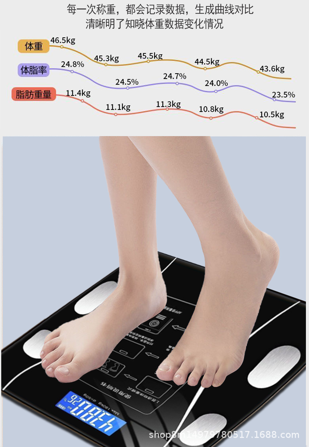 국경 간 블루투스 전자 체중계, 충전식 스마트 체지방 측정기, 건강 체중계, 1개부터 주문 가능 체중계스토어 가기