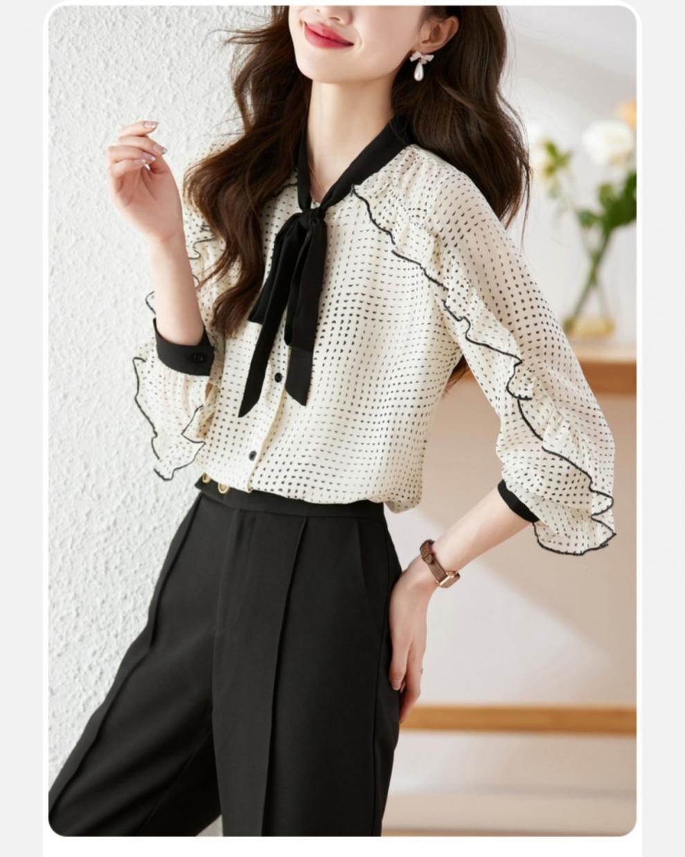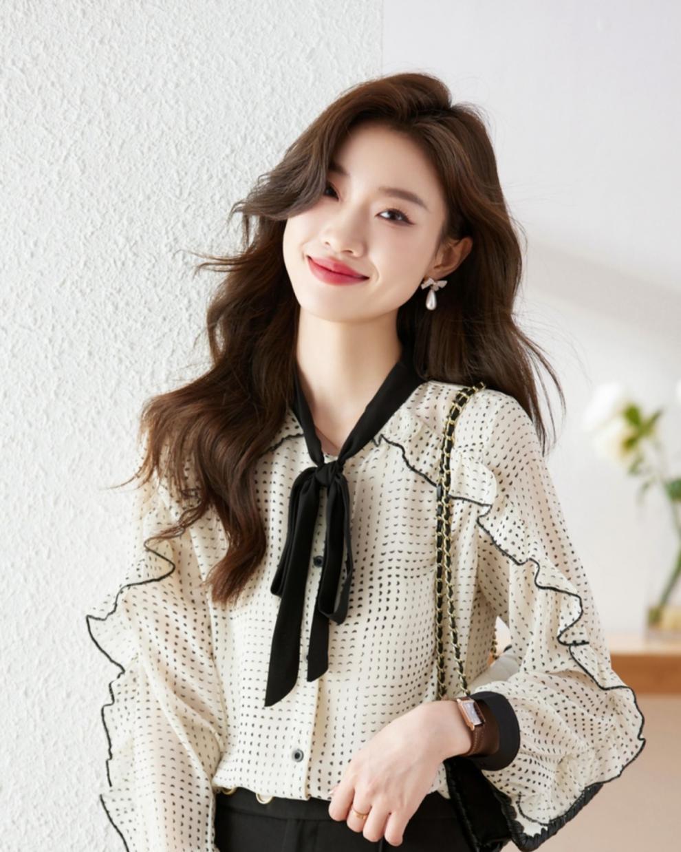쉬폰 셔츠 여성용 디자인 센스 셔츠 봄 2023 새로운 하이 엔드 시크 스몰 셔츠 연령 감소 아름다운 외국 스타일 탑스토어 가기