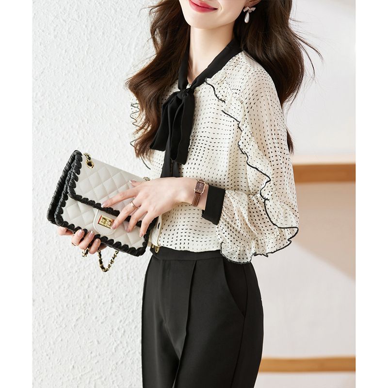 쉬폰 셔츠 여성용 디자인 센스 셔츠 봄 2023 새로운 하이 엔드 시크 스몰 셔츠 연령 감소 아름다운 외국 스타일 탑