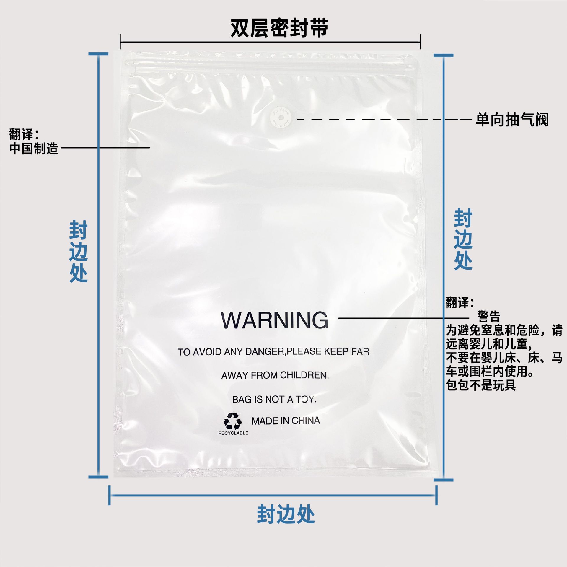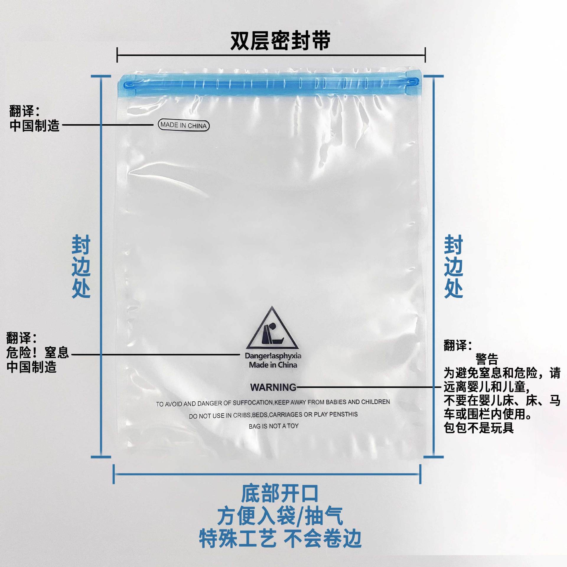 100개부터 맞춤형 아마존 국경 경고 의류 지퍼 가방 양말 진공 가방 아동복 압축 가방스토어 가기