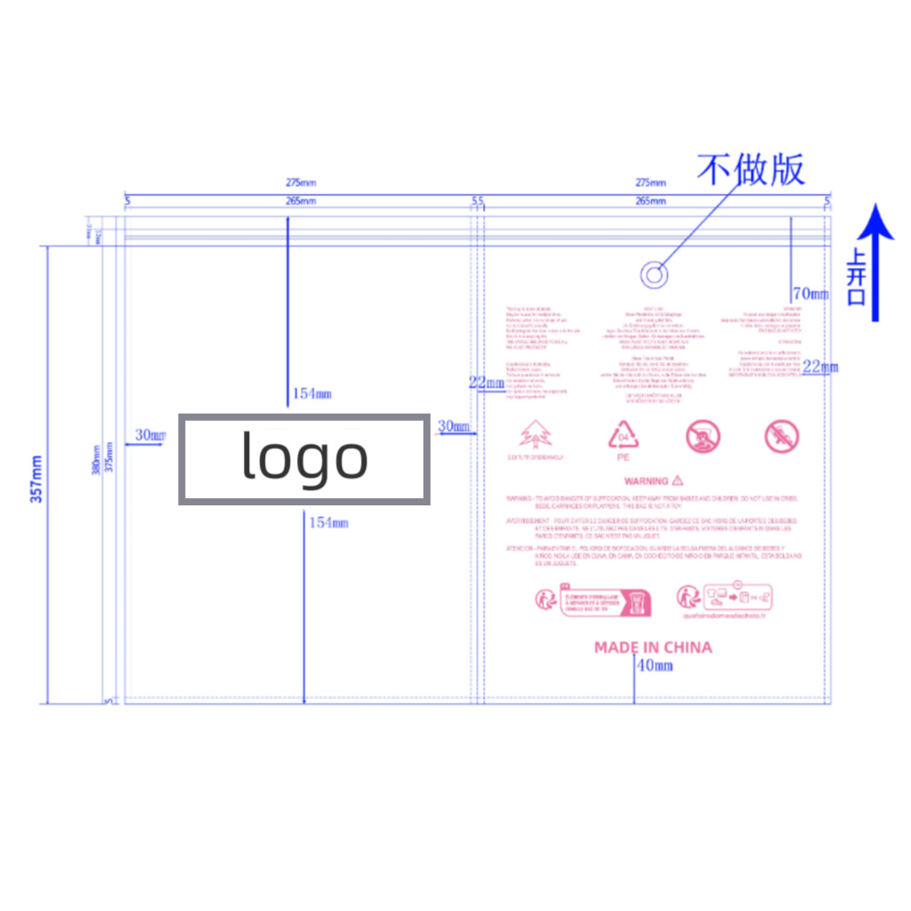 • 양면 밀봉, 하단 개구부 27.5*37.5cm [PET9 실크], PA