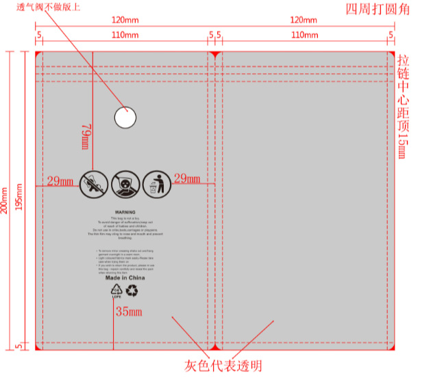 • 에어 밸브 이중 지퍼 12*20cm; PA