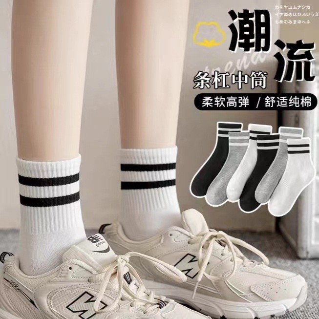 • 단색 수직 스트립 중간 튜브 양말