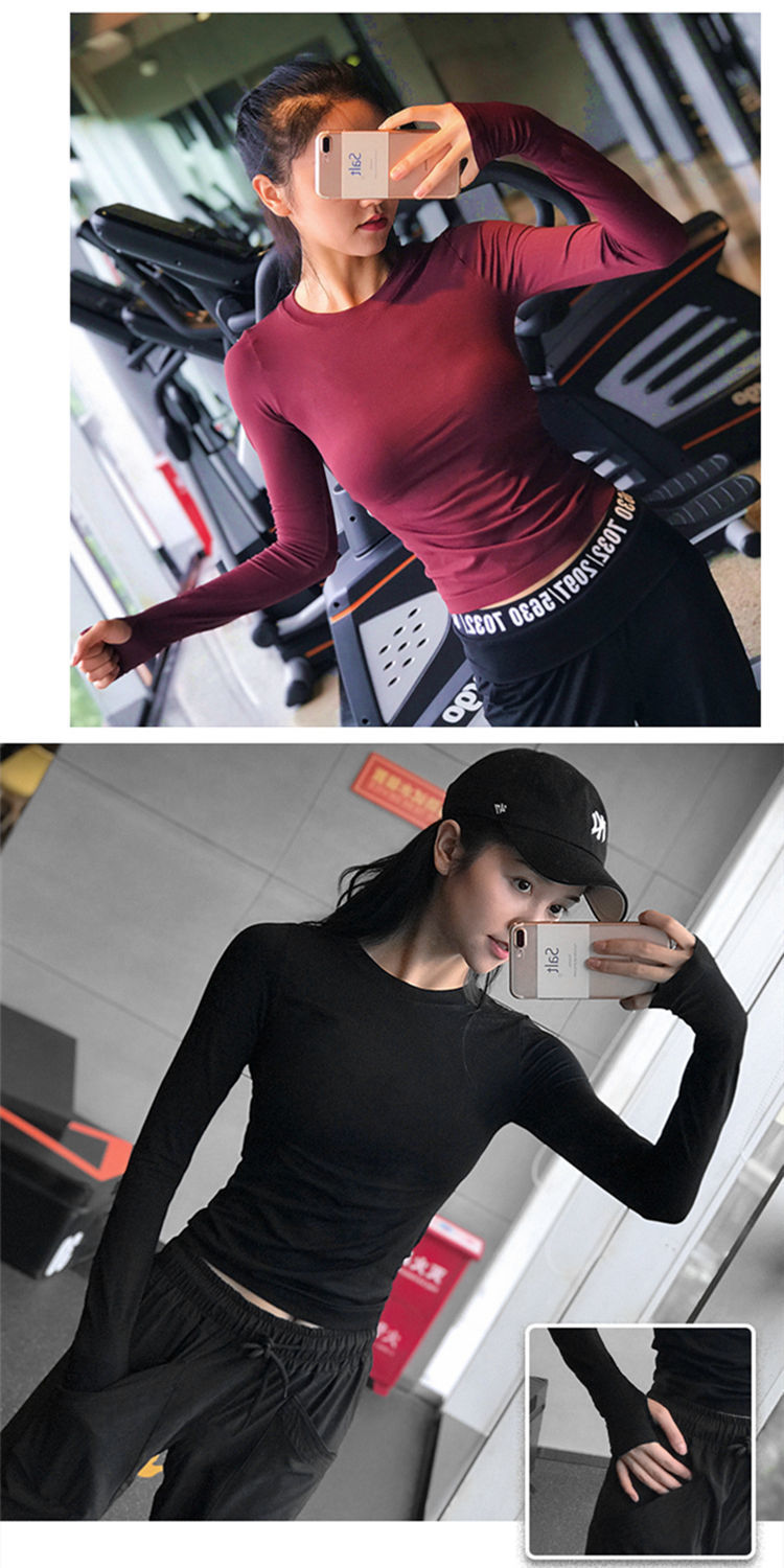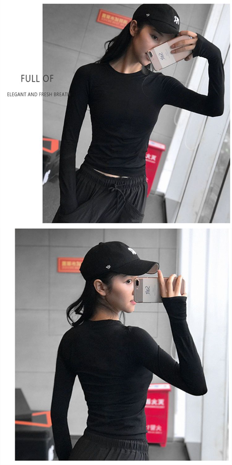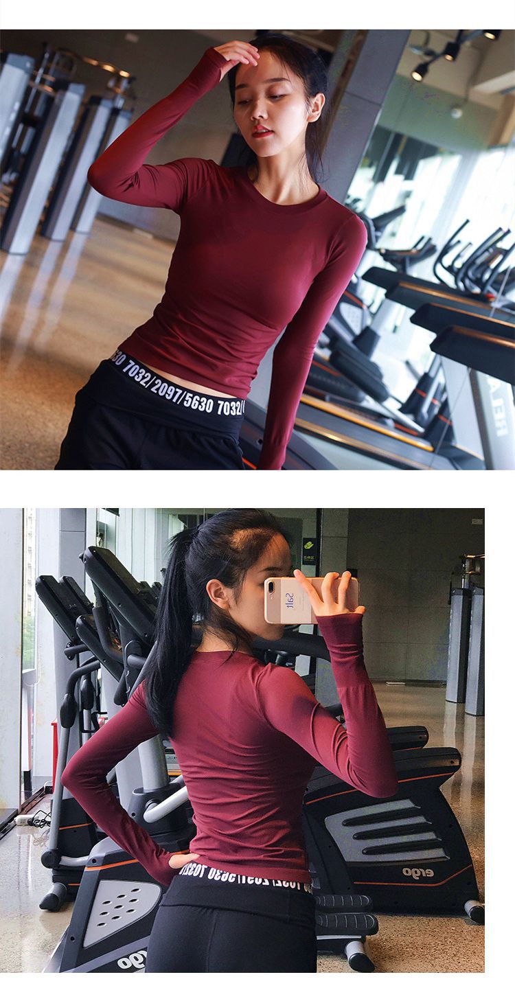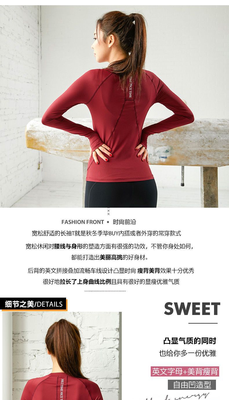 피트니스 티셔츠 탑 여성용 라운드 넥 아름다운 등 통기성 가을과 겨울 긴 소매 피트니스 의류 스포츠 러닝 요가 의류스토어 가기