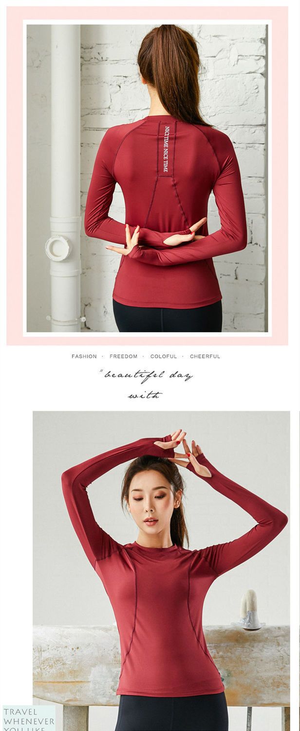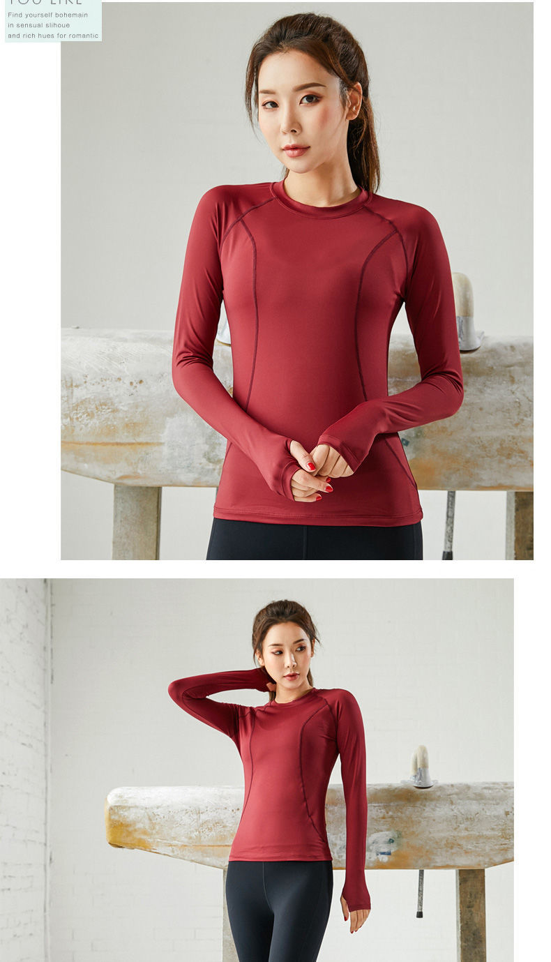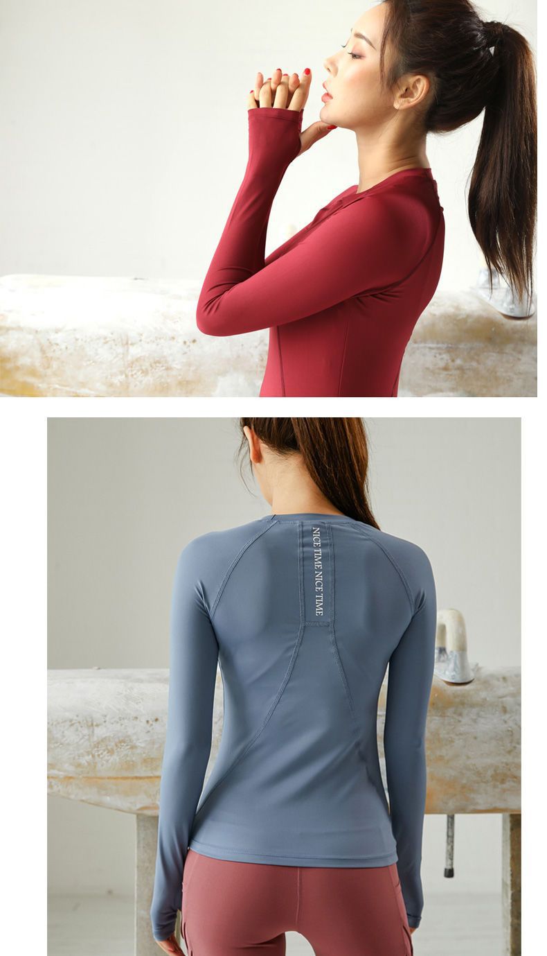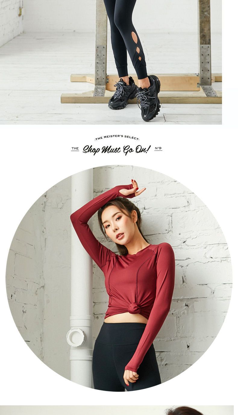 피트니스 티셔츠 탑 여성용 라운드 넥 아름다운 등 통기성 가을과 겨울 긴 소매 피트니스 의류 스포츠 러닝 요가 의류스토어 가기