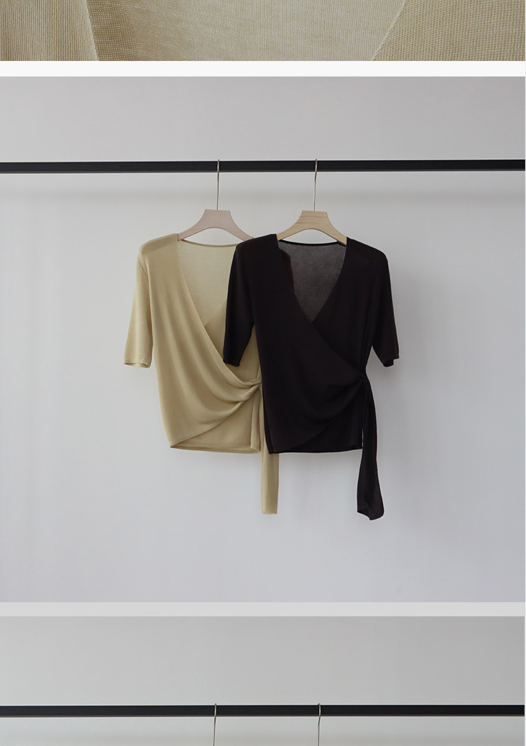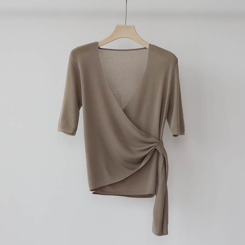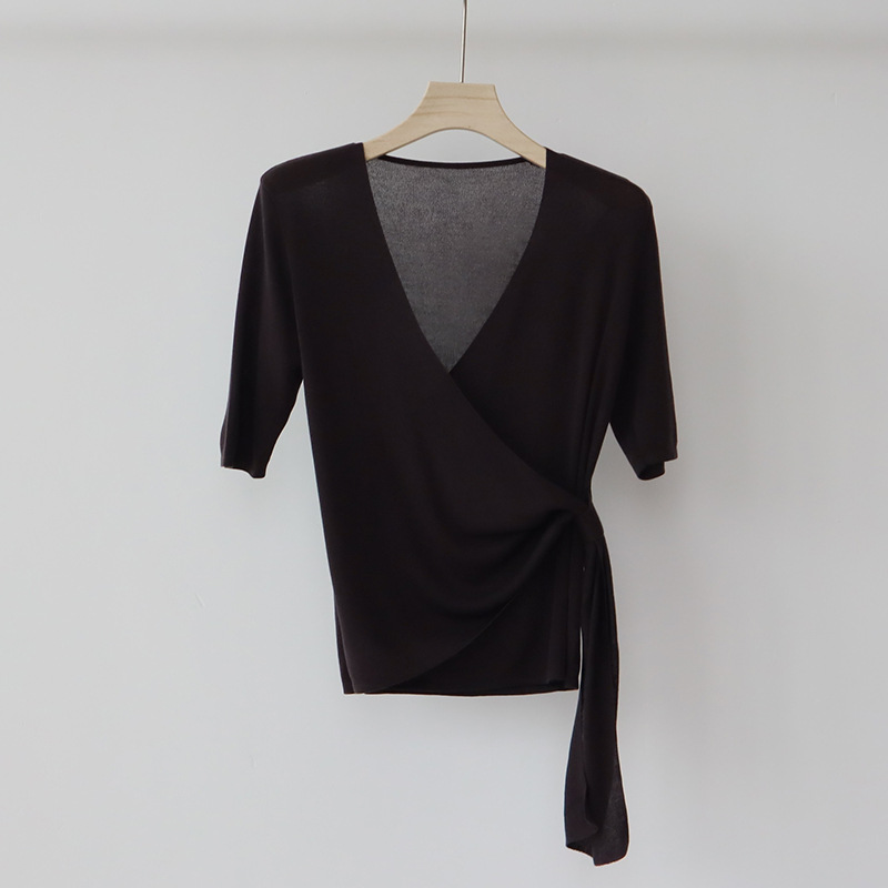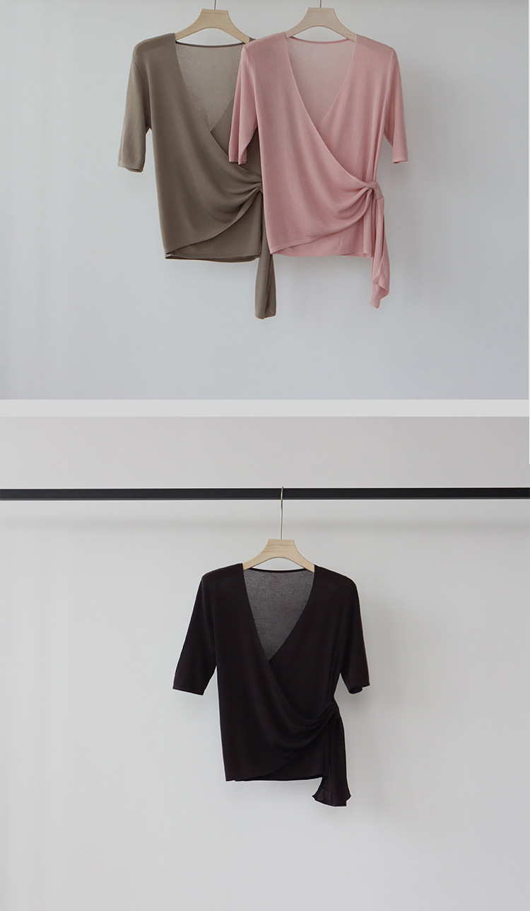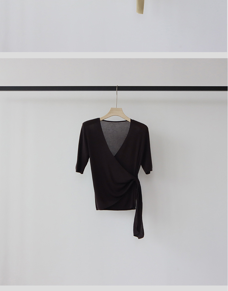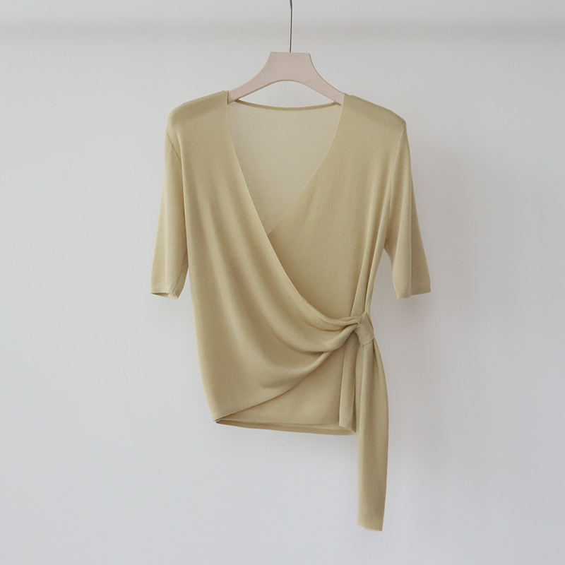 레이세르 텐셀 여름 크로스 스트랩 니트 반팔 브이넥 탑 티셔츠 여성용 고온 성형 공정스토어 가기