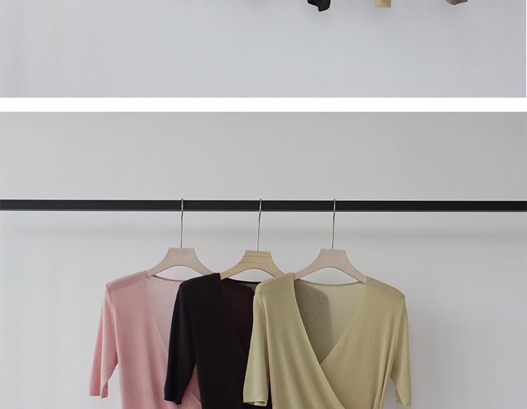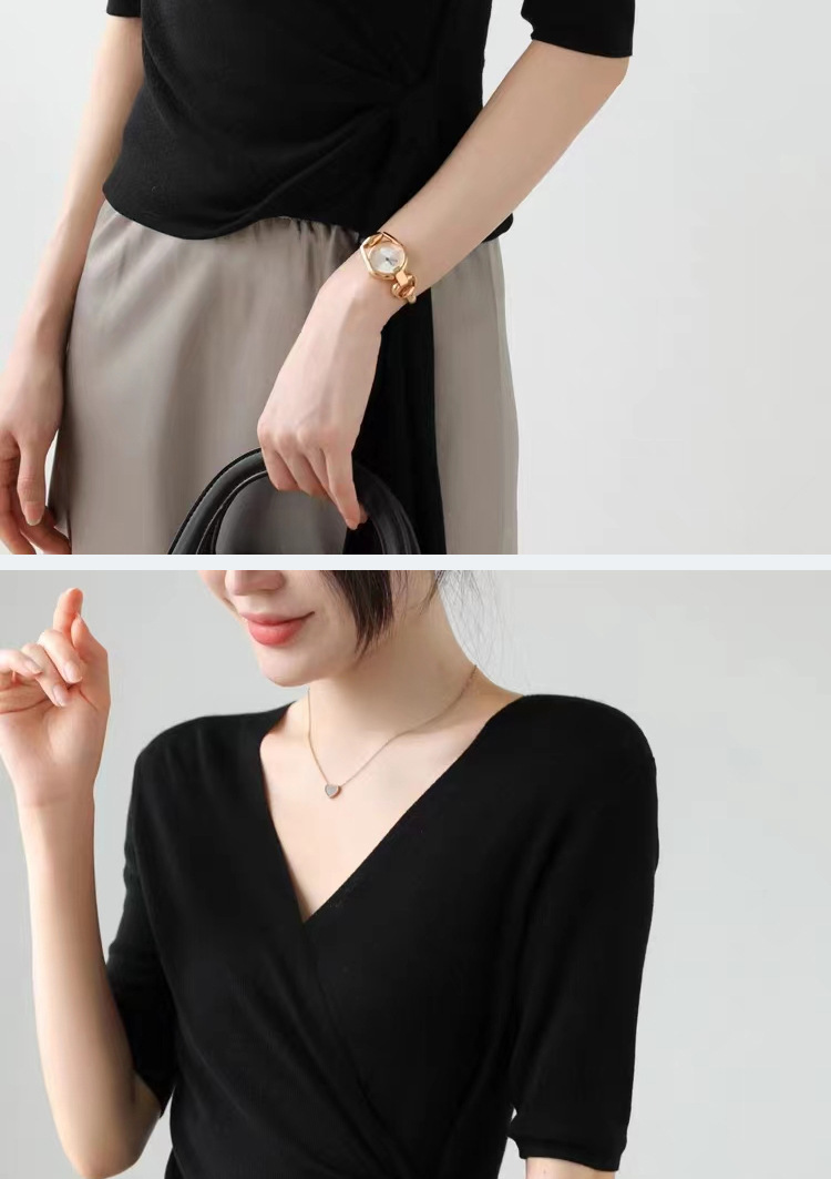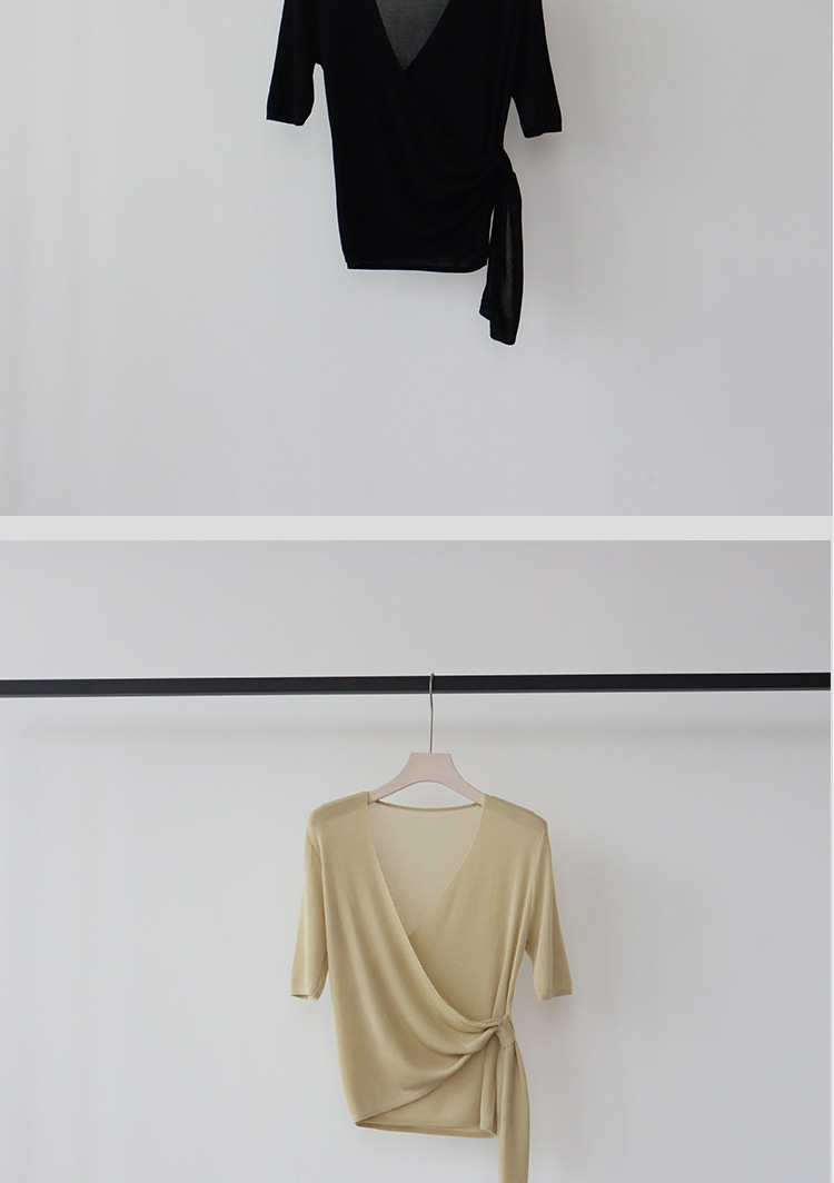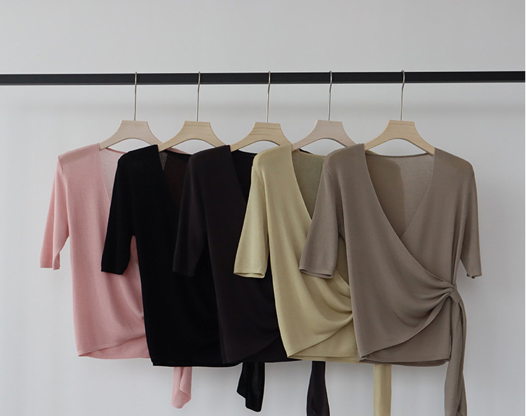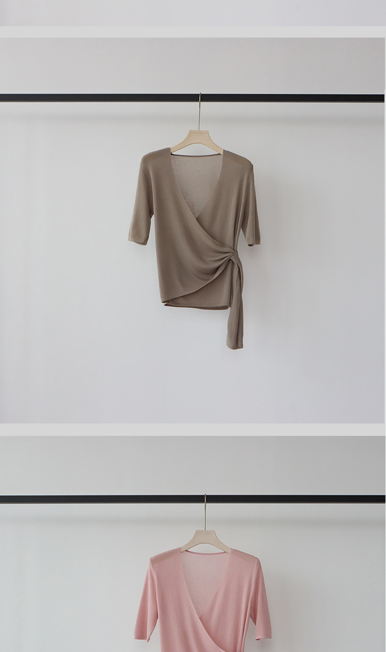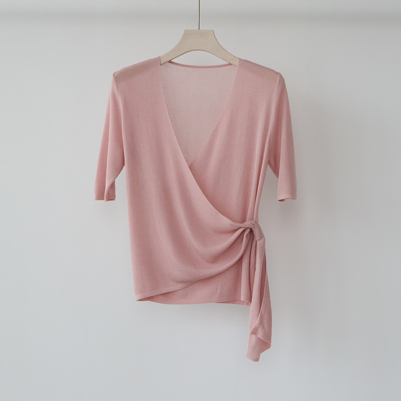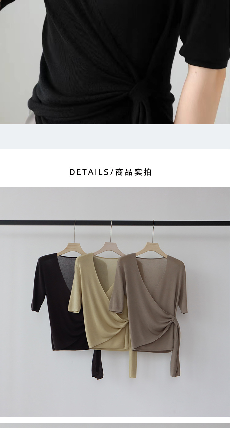 레이세르 텐셀 여름 크로스 스트랩 니트 반팔 브이넥 탑 티셔츠 여성용 고온 성형 공정스토어 가기