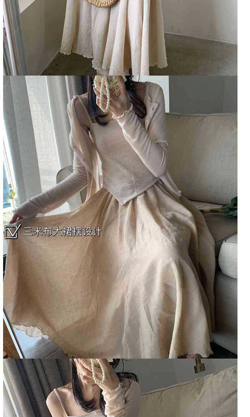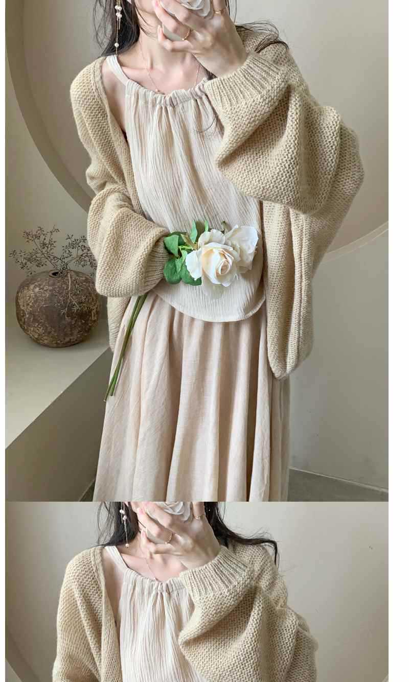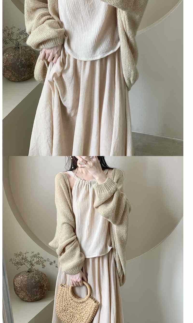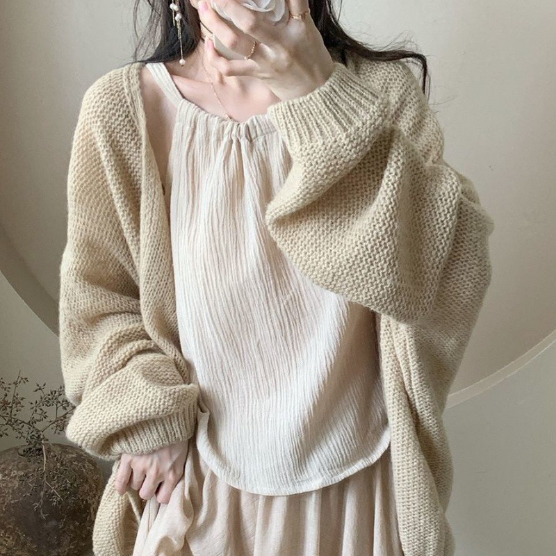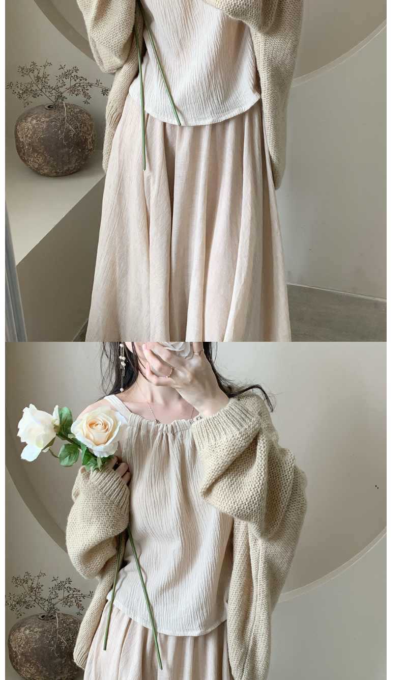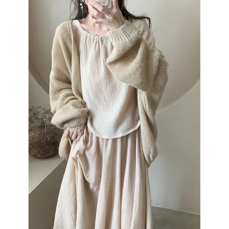 퓨어 윈드 세트 여성 가을 2023 뉴 스웨터 가디건 + 넥 캐미솔 + 하프 길이 스커트 3 종 세트스토어 가기