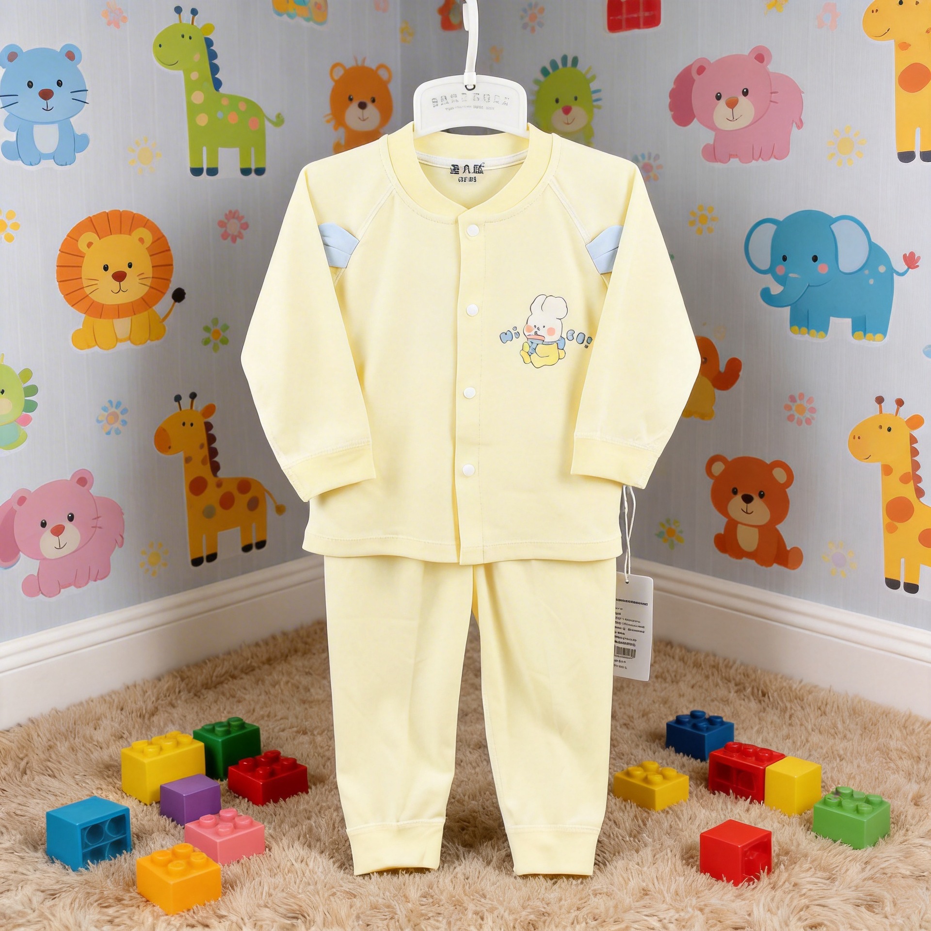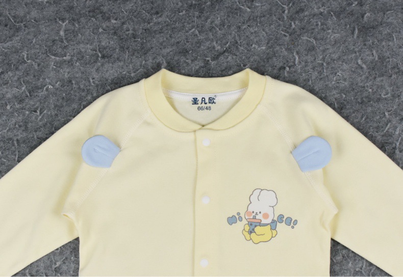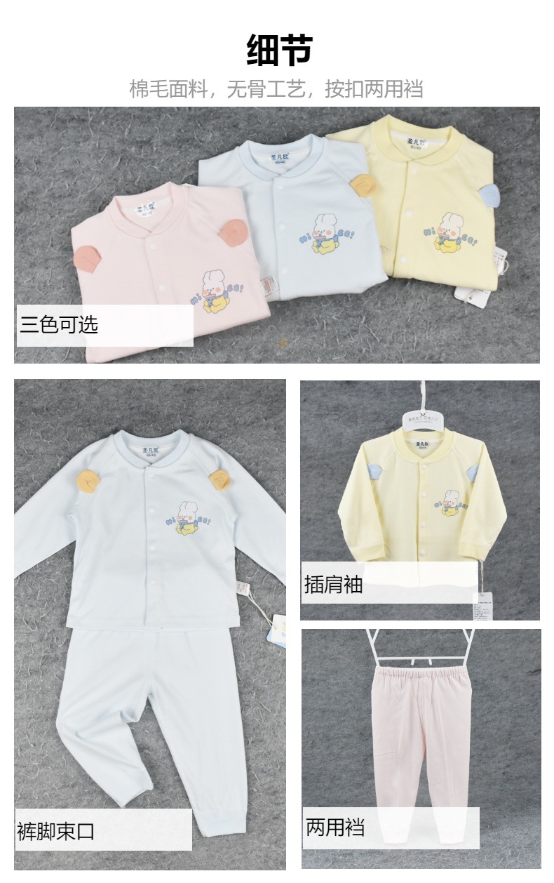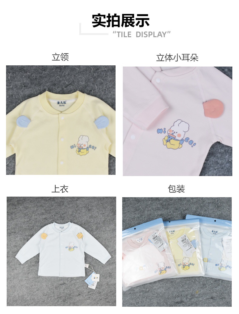 23 봄과 가을 아기 스탠드 칼라 코튼 울 세트 뼈없는 라글란 슬리브 아기 속옷 스테레오 귀 66-80 사이즈