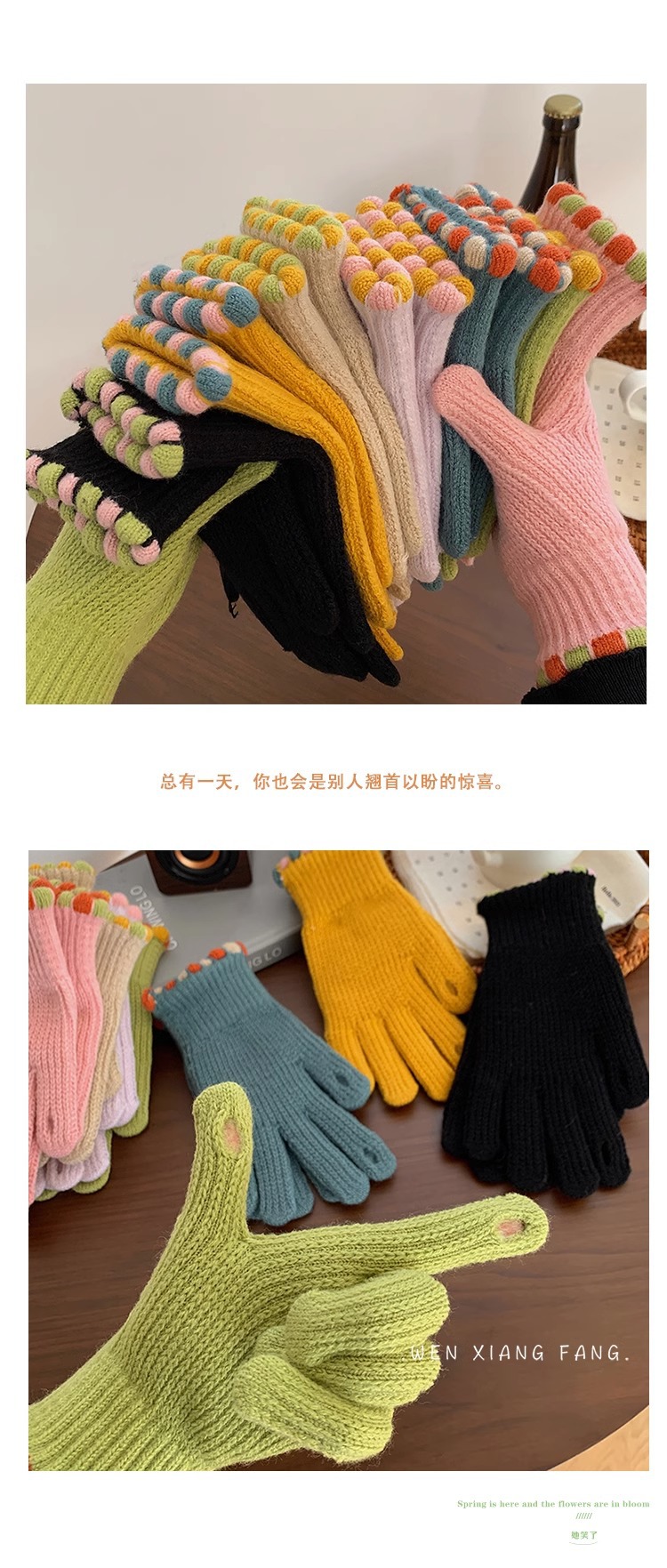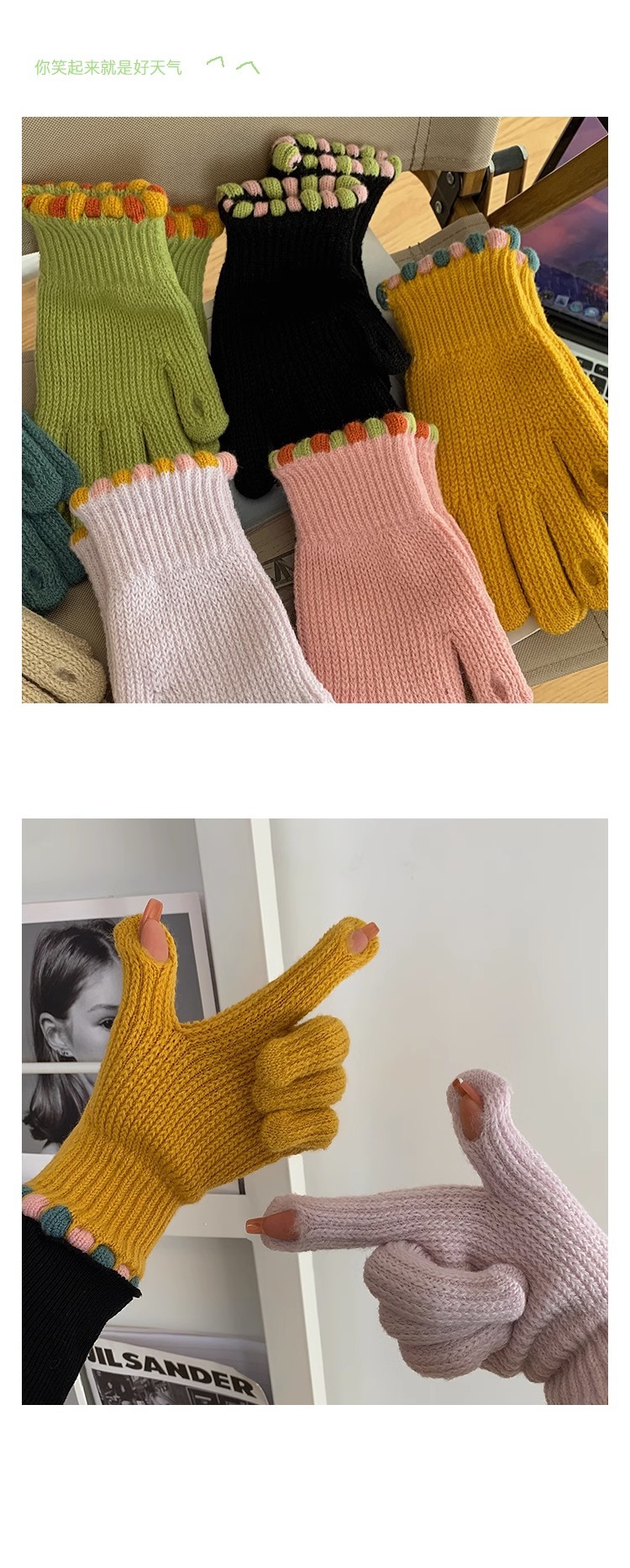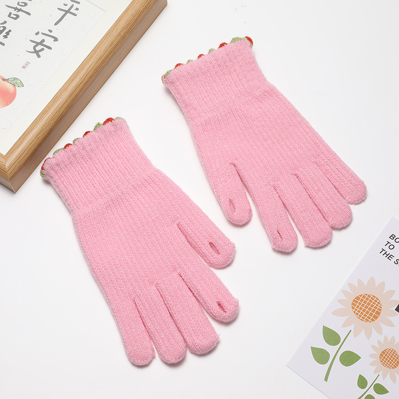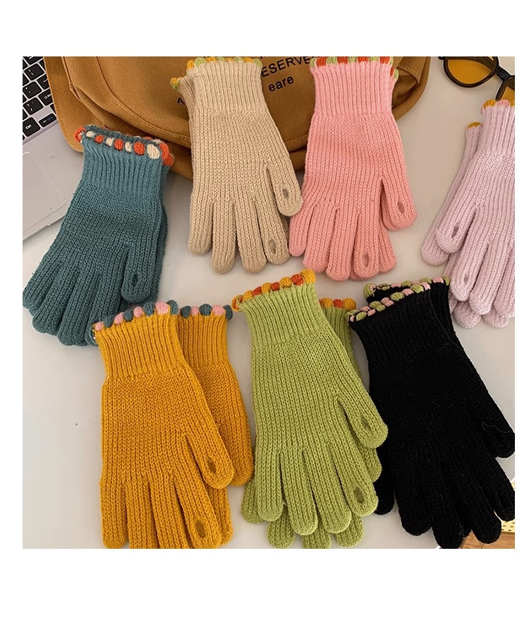 한국 in 작은 설탕 콩 양모 니트 장갑 겨울 손가락 노출 여성의 단색 터치 스크린 따뜻한 방풍 사이클링 손가락