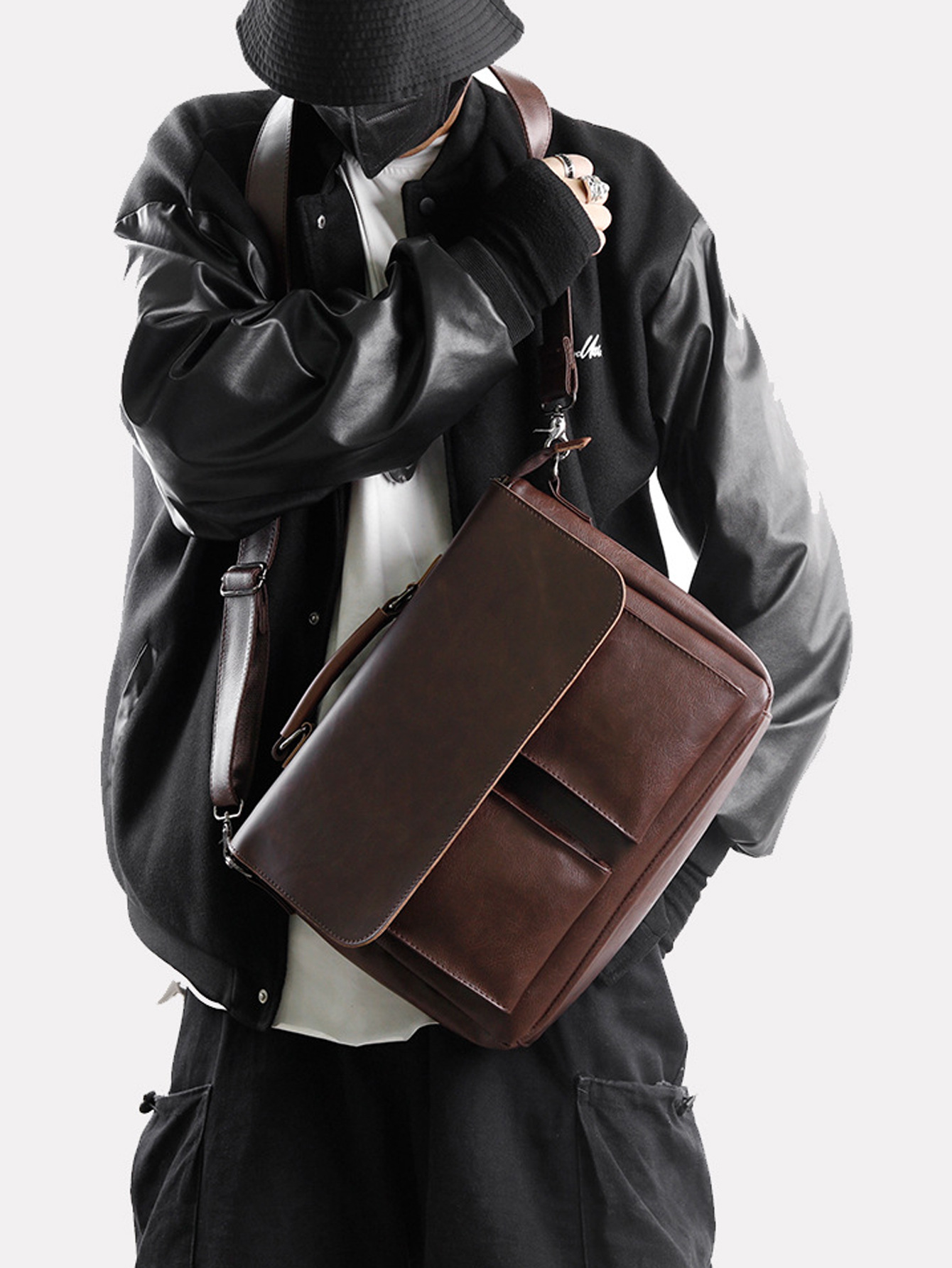 612 브라운 신형 핸드백 트렌디한 한국 스타일 남성용 가방 숄더백 크로스백 비즈니스 컴퓨터 서류가방 해외배송