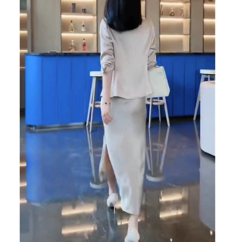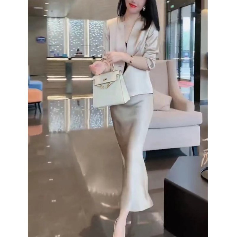 23671 큰 사랑 아름다움 Yiyuan 2023 가을 새로운 서양 스타일 느슨한 슬리밍 단색 세트 재킷 + 여성용 스커트스토어 가기