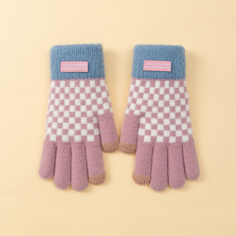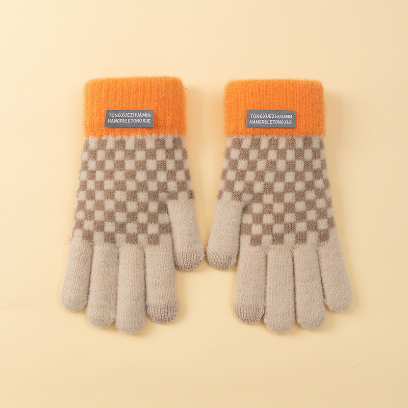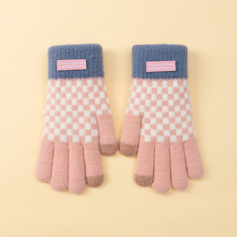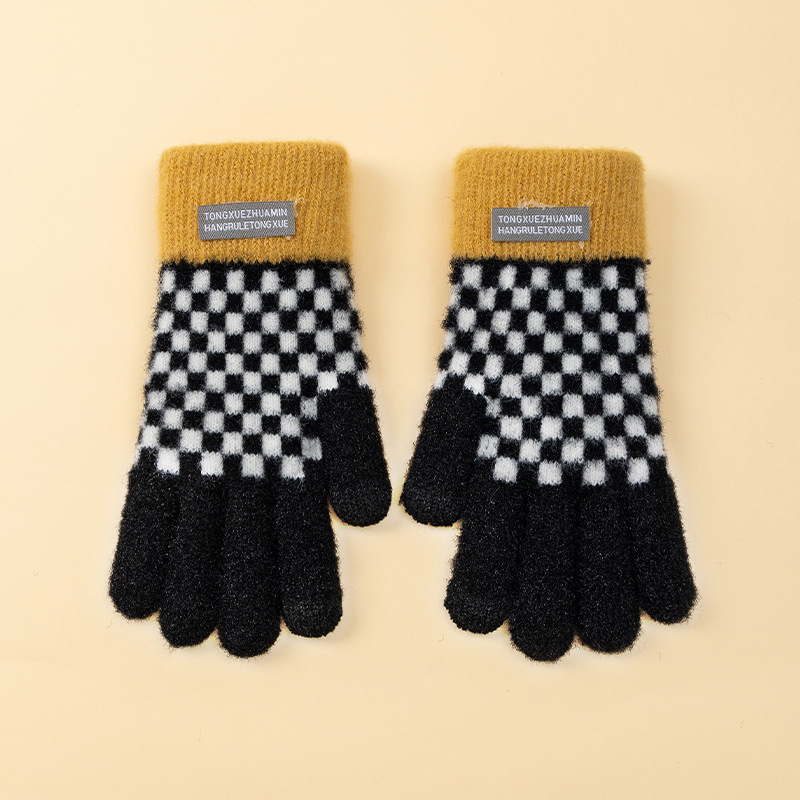 기모 두꺼운 터치 스크린 바둑판 장갑 여성의 가을과 겨울 패션 따뜻한 양모 니트 남성 승마 방한 학생