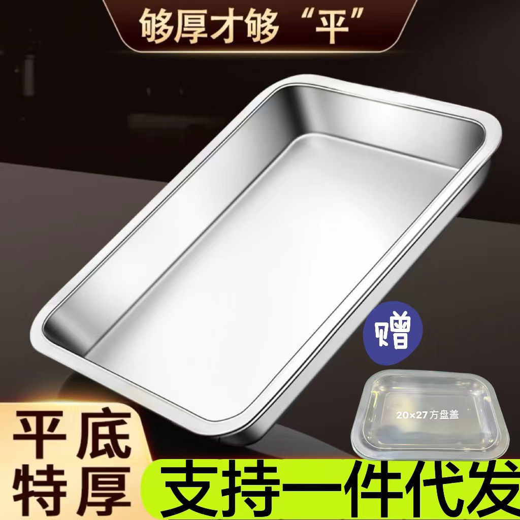 스테인레스 스틸 두꺼운 사각 접시 차가운 접시 주방 밀폐 트레이 베이킹 트레이 스테인레스 스틸 상업용 뷔페 플랫 바닥 플레이트