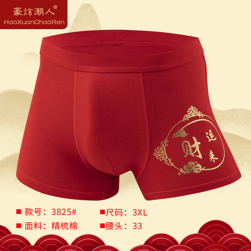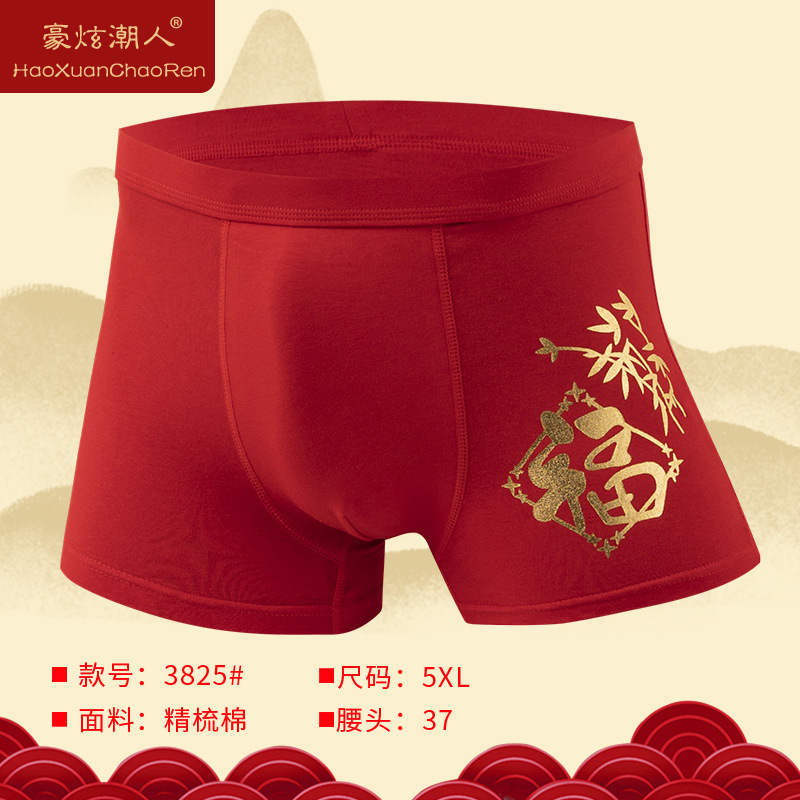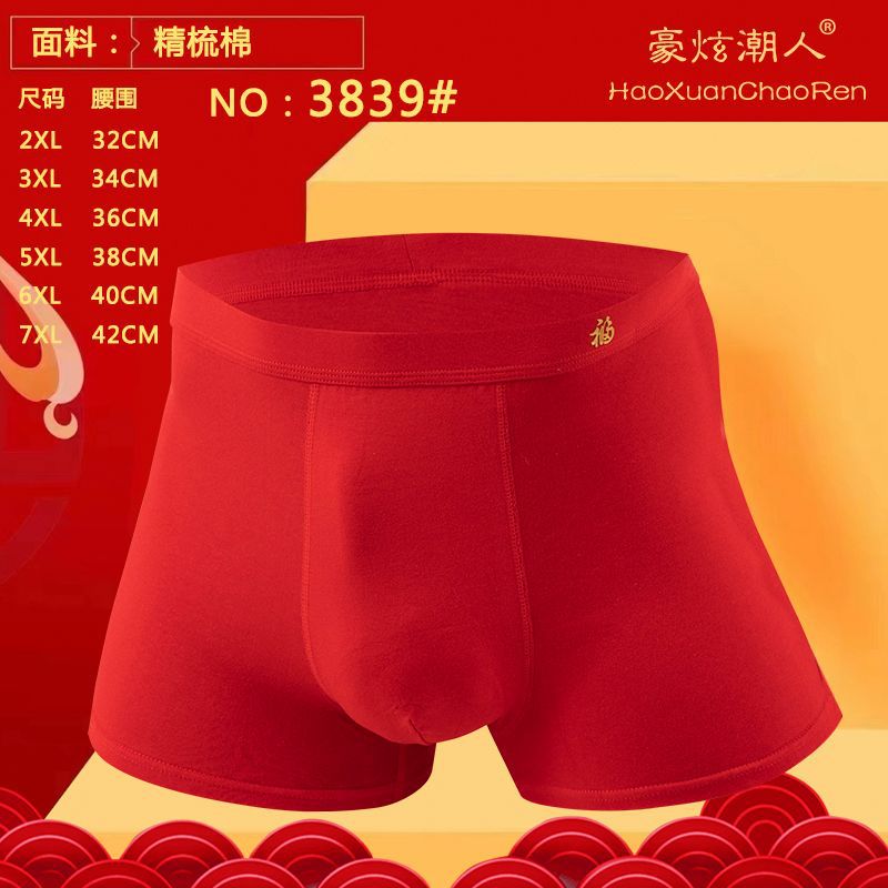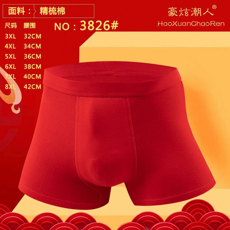 남성용 레드 베밍니아 속옷 퓨어 레드 박서 면 통기성 4 코너 미드 웨이스트 속옷 남성용 웨딩 반바지스토어 가기