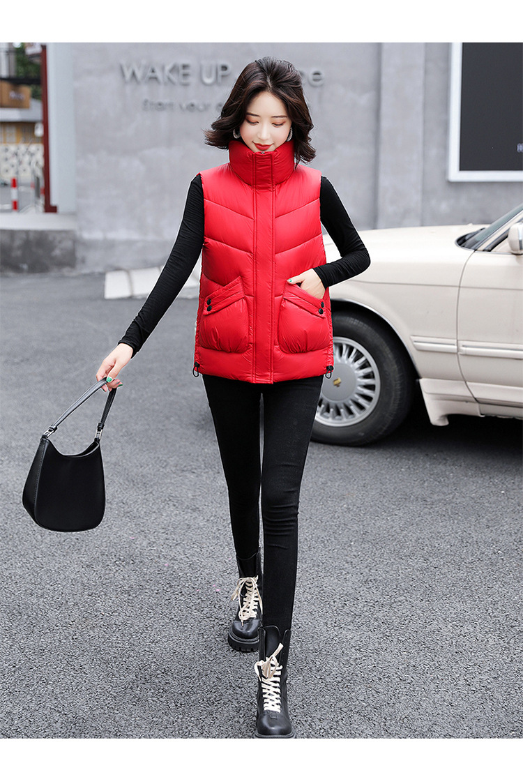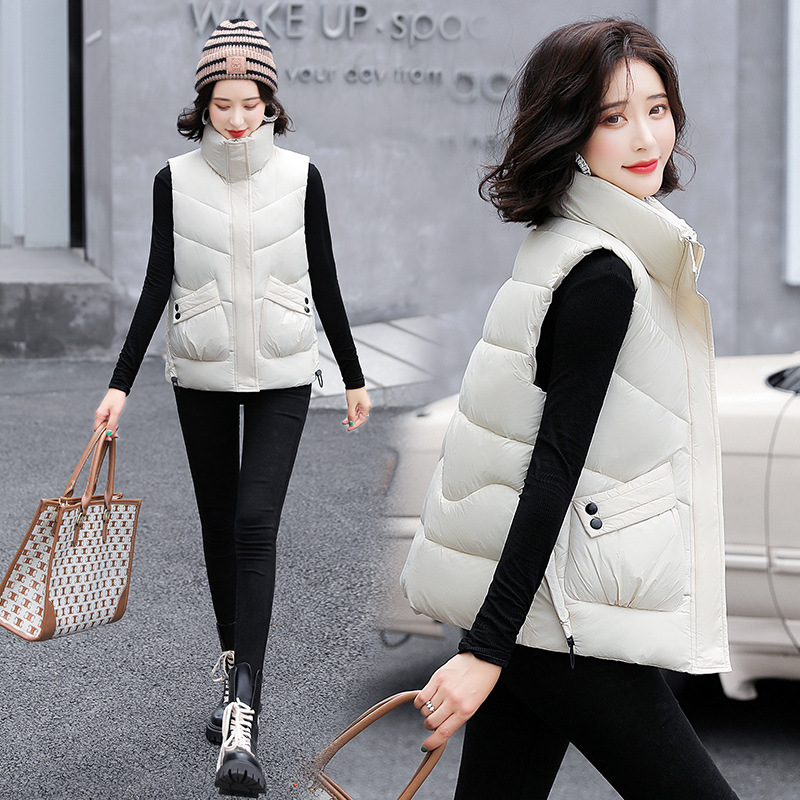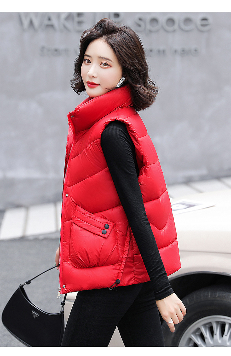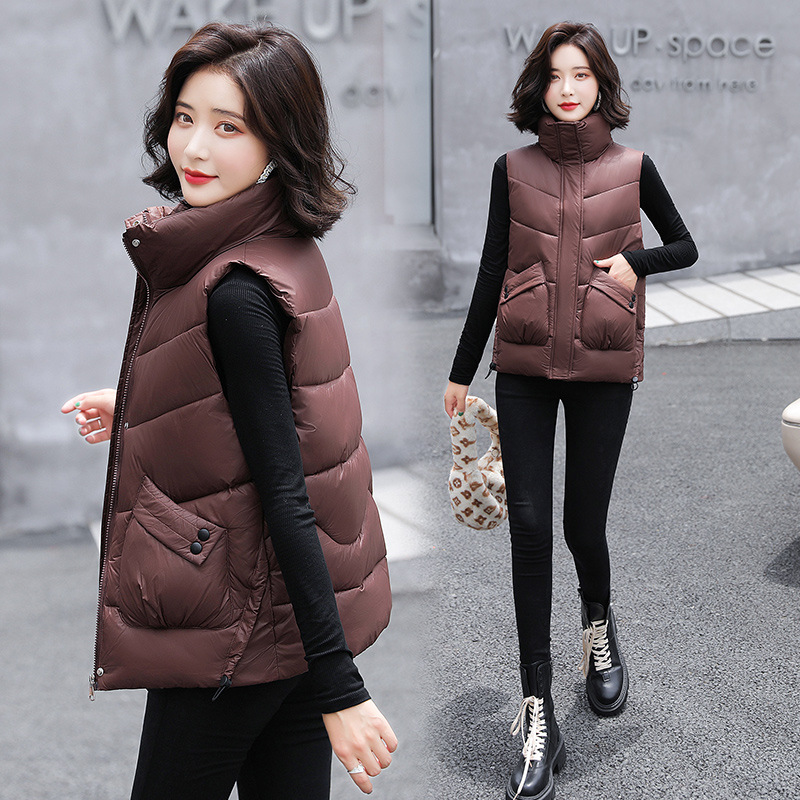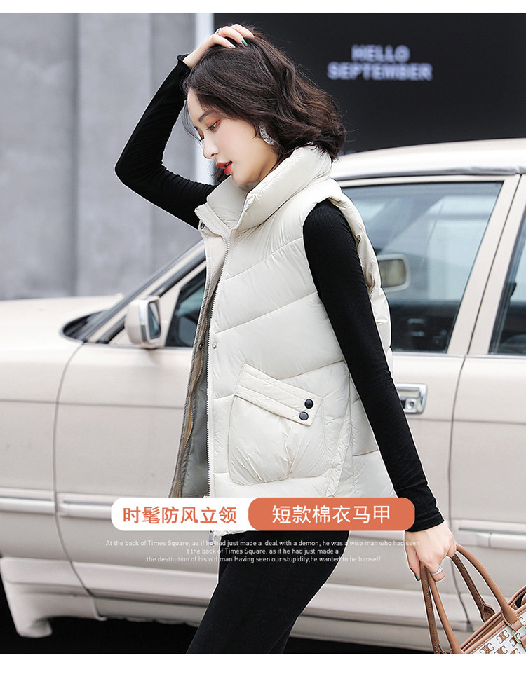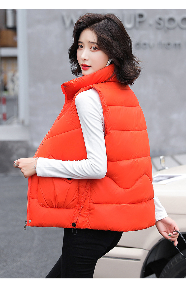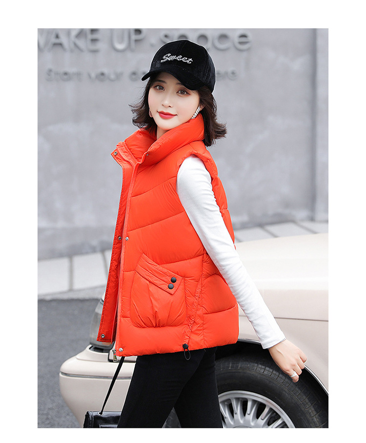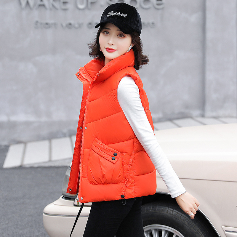 2023 겨울 새로운 면 조끼 여자의 짧은 한국 스타일 조끼 여자의 겉옷 슬림핏 두꺼운 조끼 코트 조끼