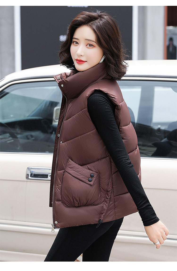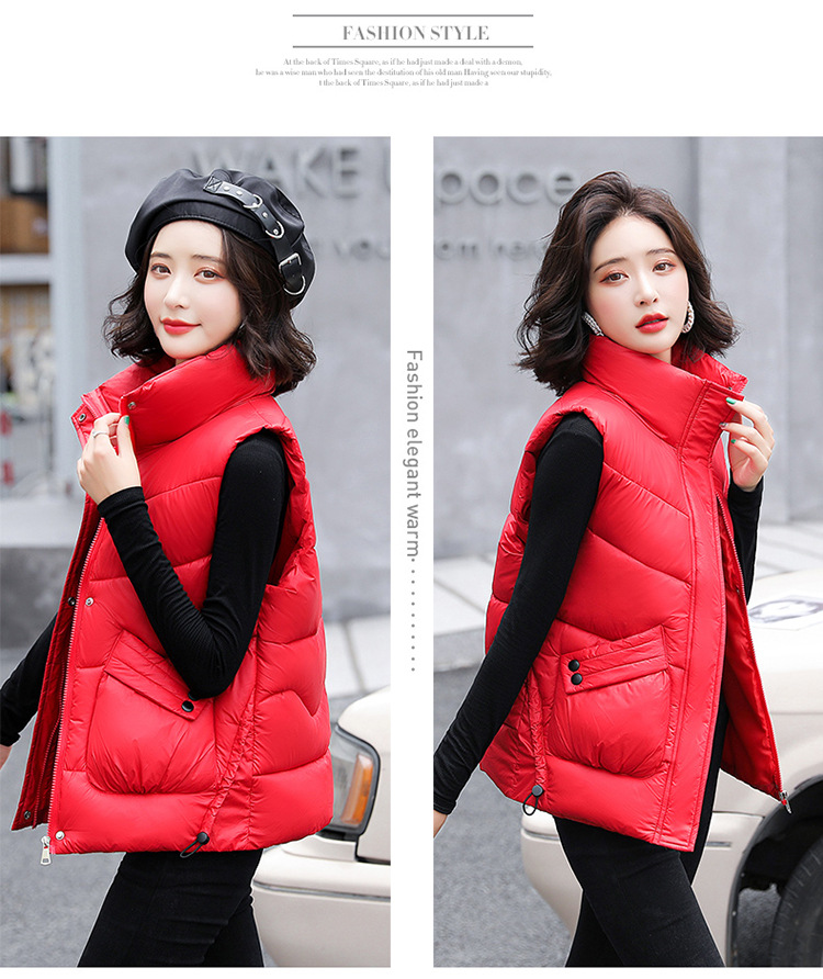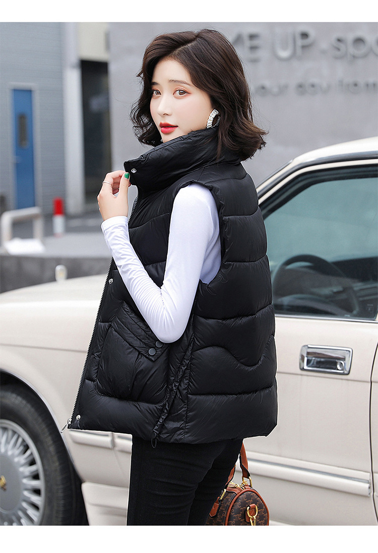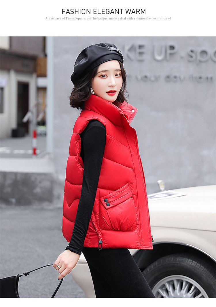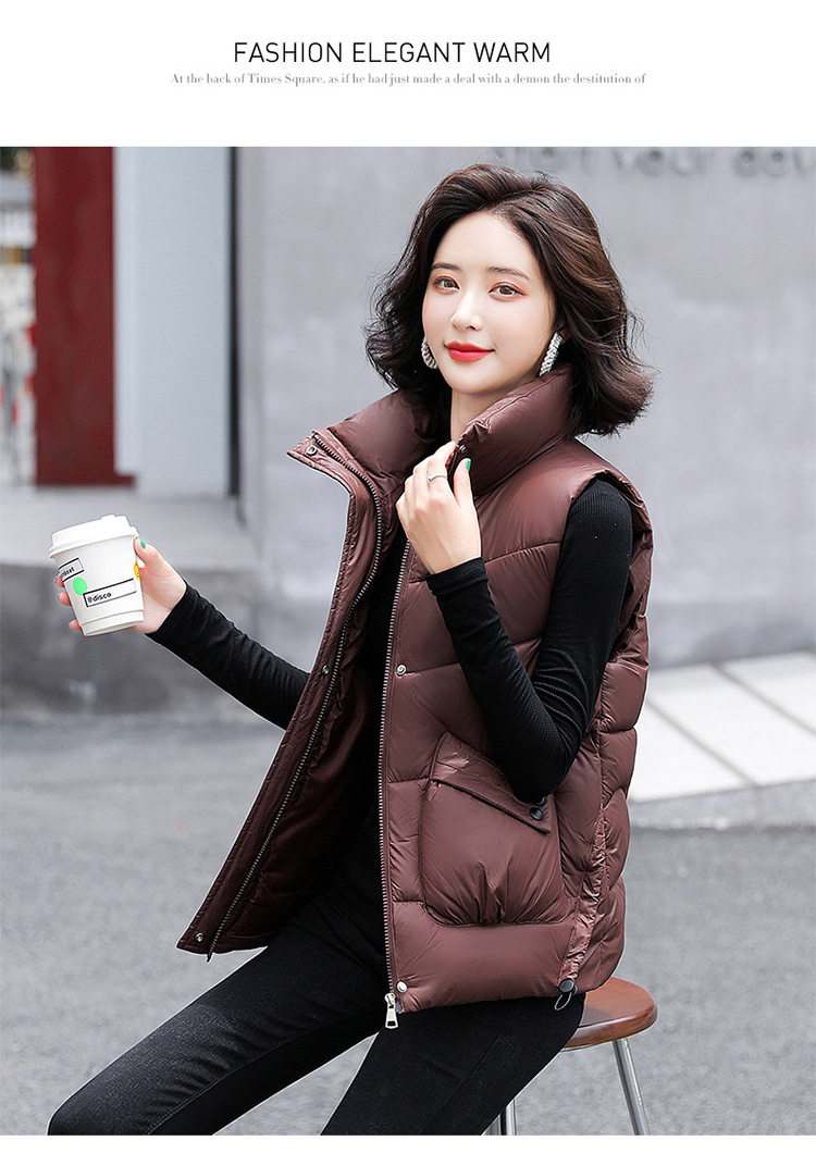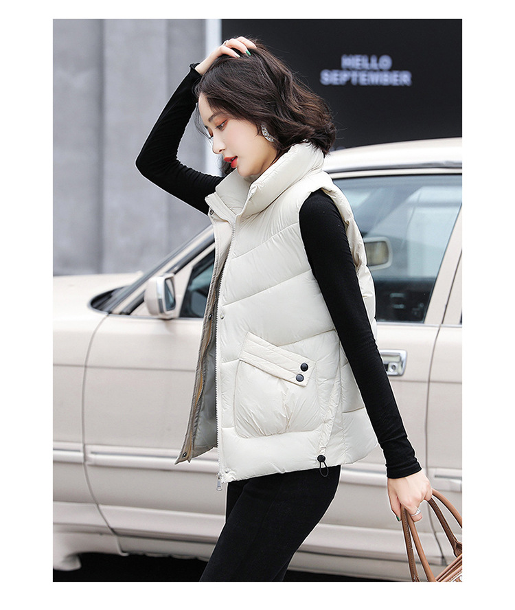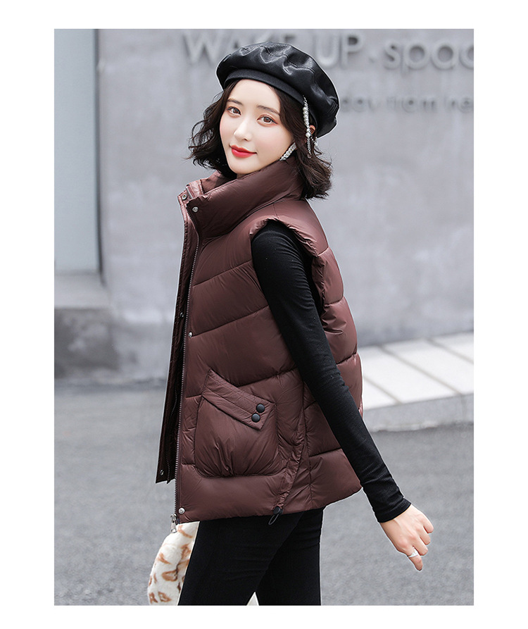2023 겨울 새로운 면 조끼 여자의 짧은 한국 스타일 조끼 여자의 겉옷 슬림핏 두꺼운 조끼 코트 조끼