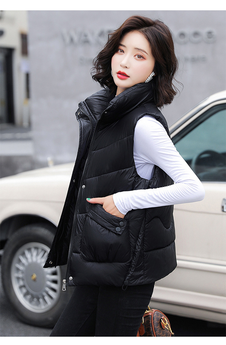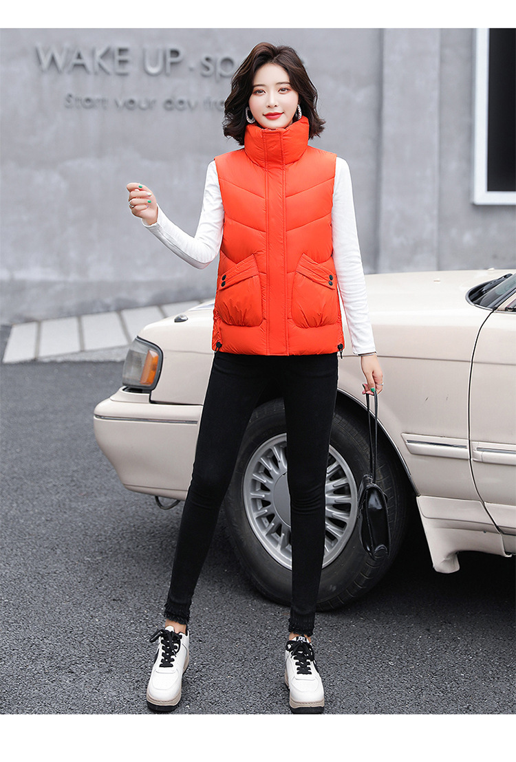 2023 겨울 새로운 면 조끼 여자의 짧은 한국 스타일 조끼 여자의 겉옷 슬림핏 두꺼운 조끼 코트 조끼스토어 가기