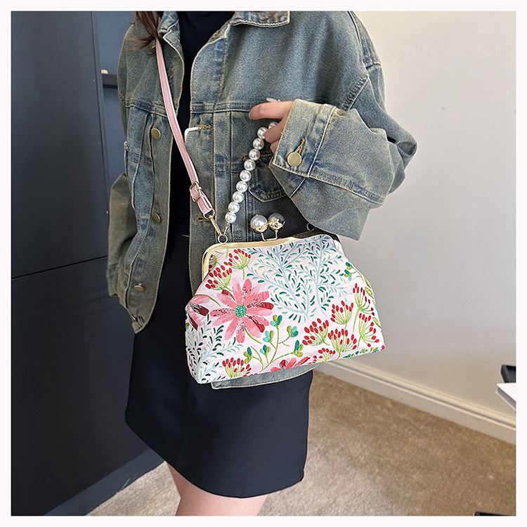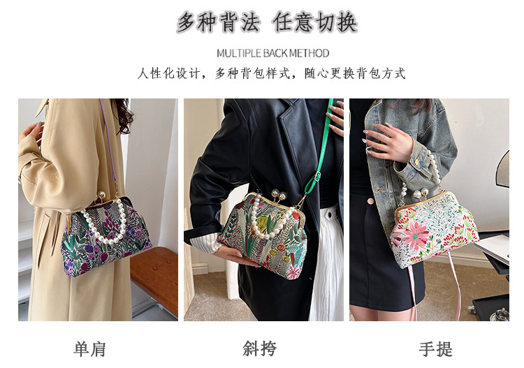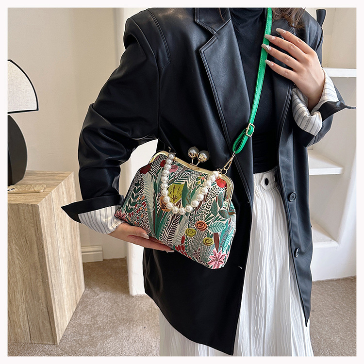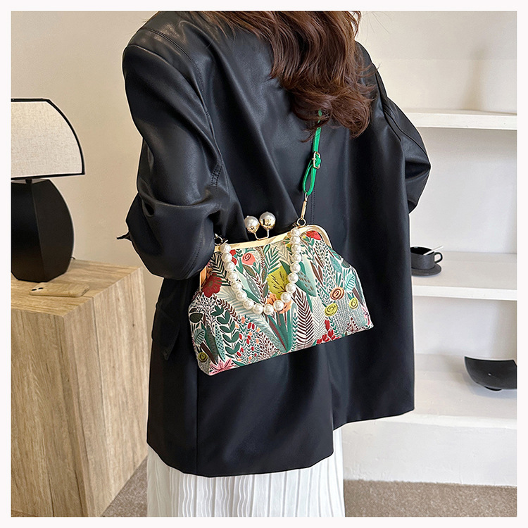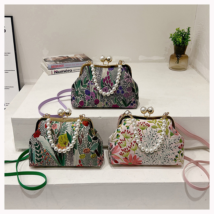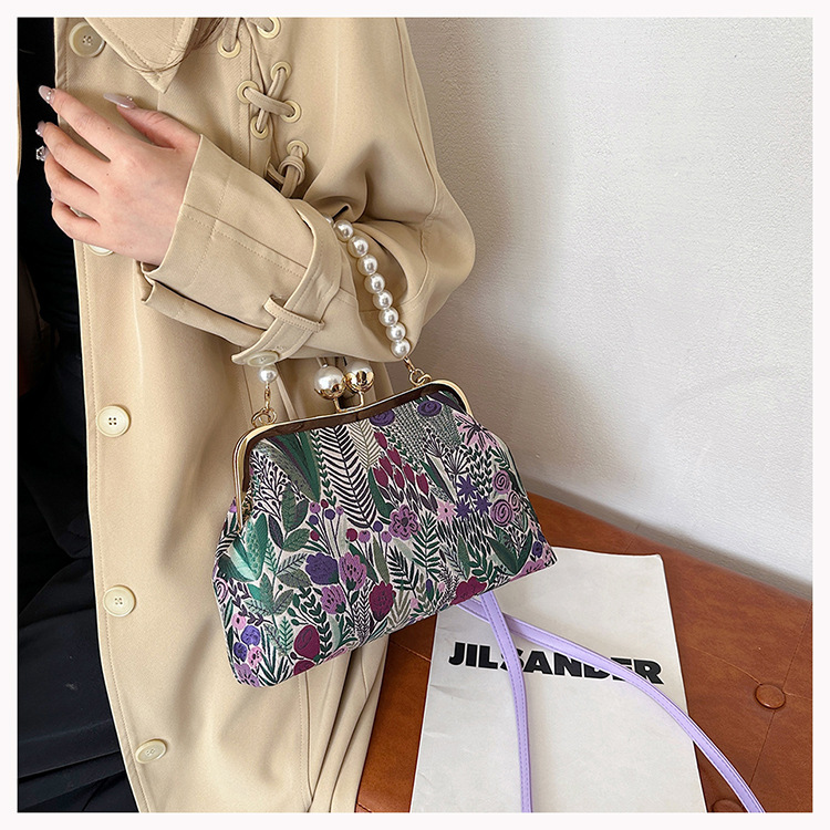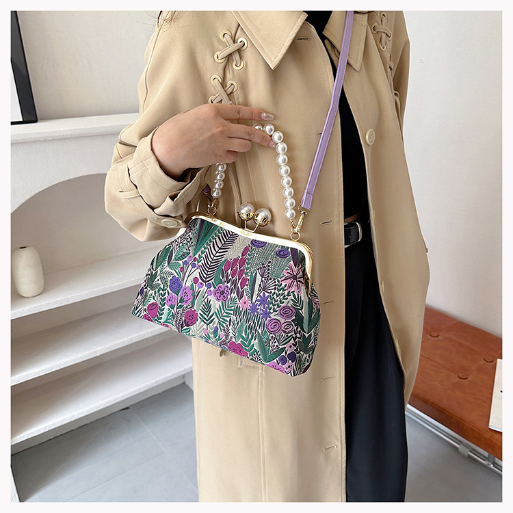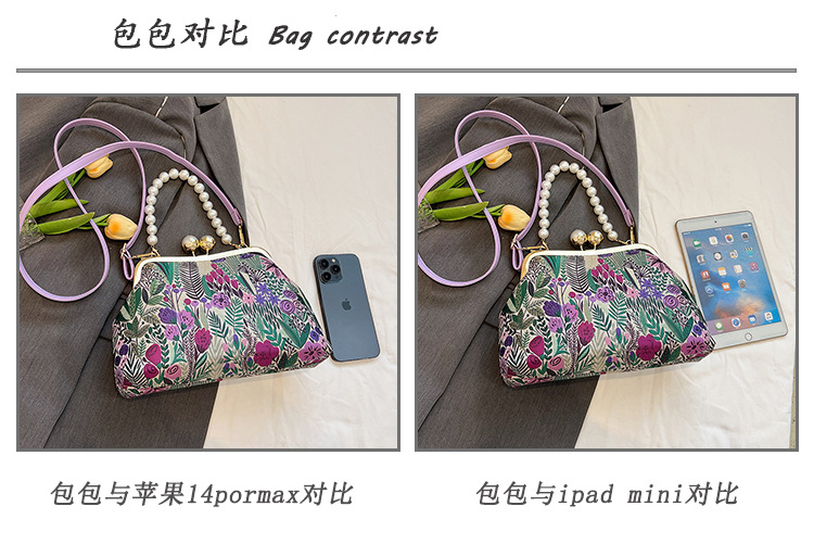 크로스보더 숲속 꽃무늬 조개 가방 2025 여름 신상 레트로 전원풍 숄더백 다용도 크로스백 여성 가방 트렌디