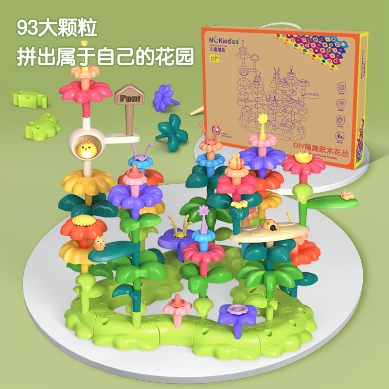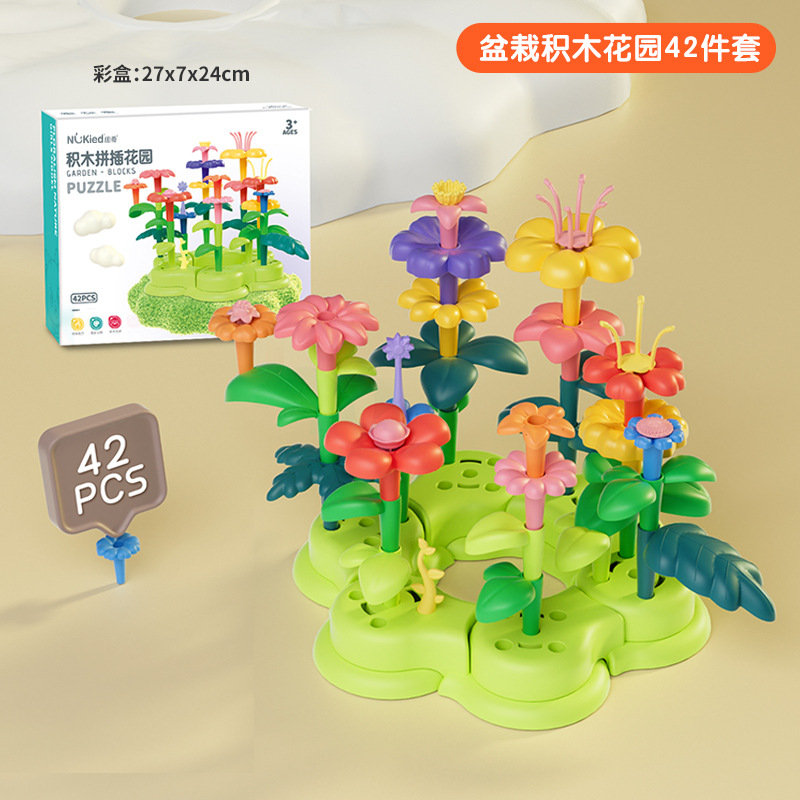 국경을 넘는 인기 판매 어린이용 시뮬레이션 빌딩 블록 꽃다발 장난감, 교육용 식물 화분, 조립된 꽃 빌딩 블록, 나무, 불후의 꽃