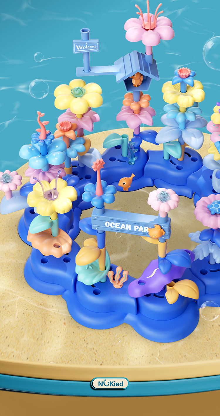 국경을 넘는 인기 판매 어린이용 시뮬레이션 빌딩 블록 꽃다발 장난감, 교육용 식물 화분, 조립된 꽃 빌딩 블록, 나무, 불후의 꽃스토어 가기