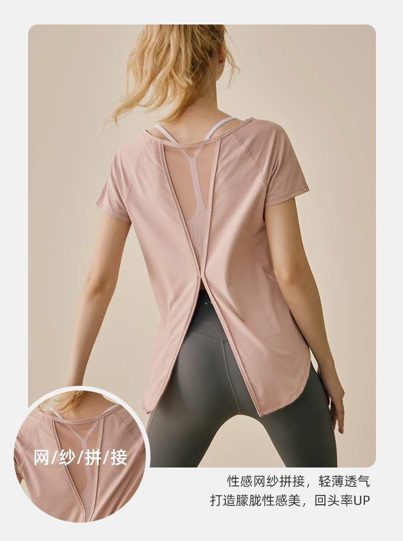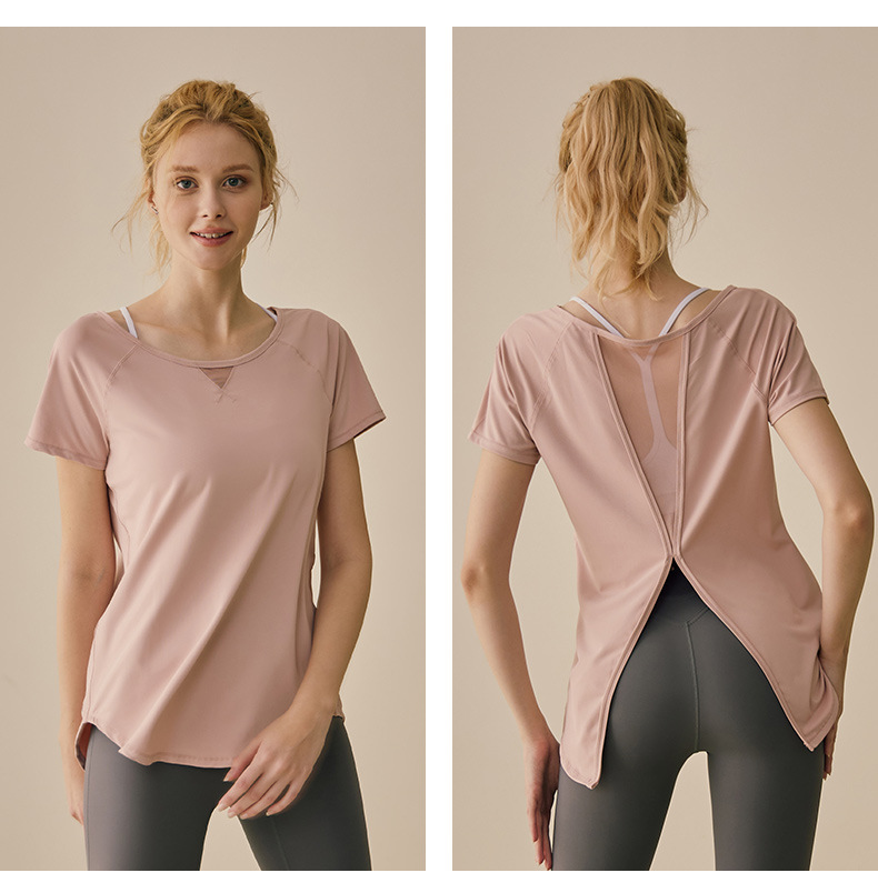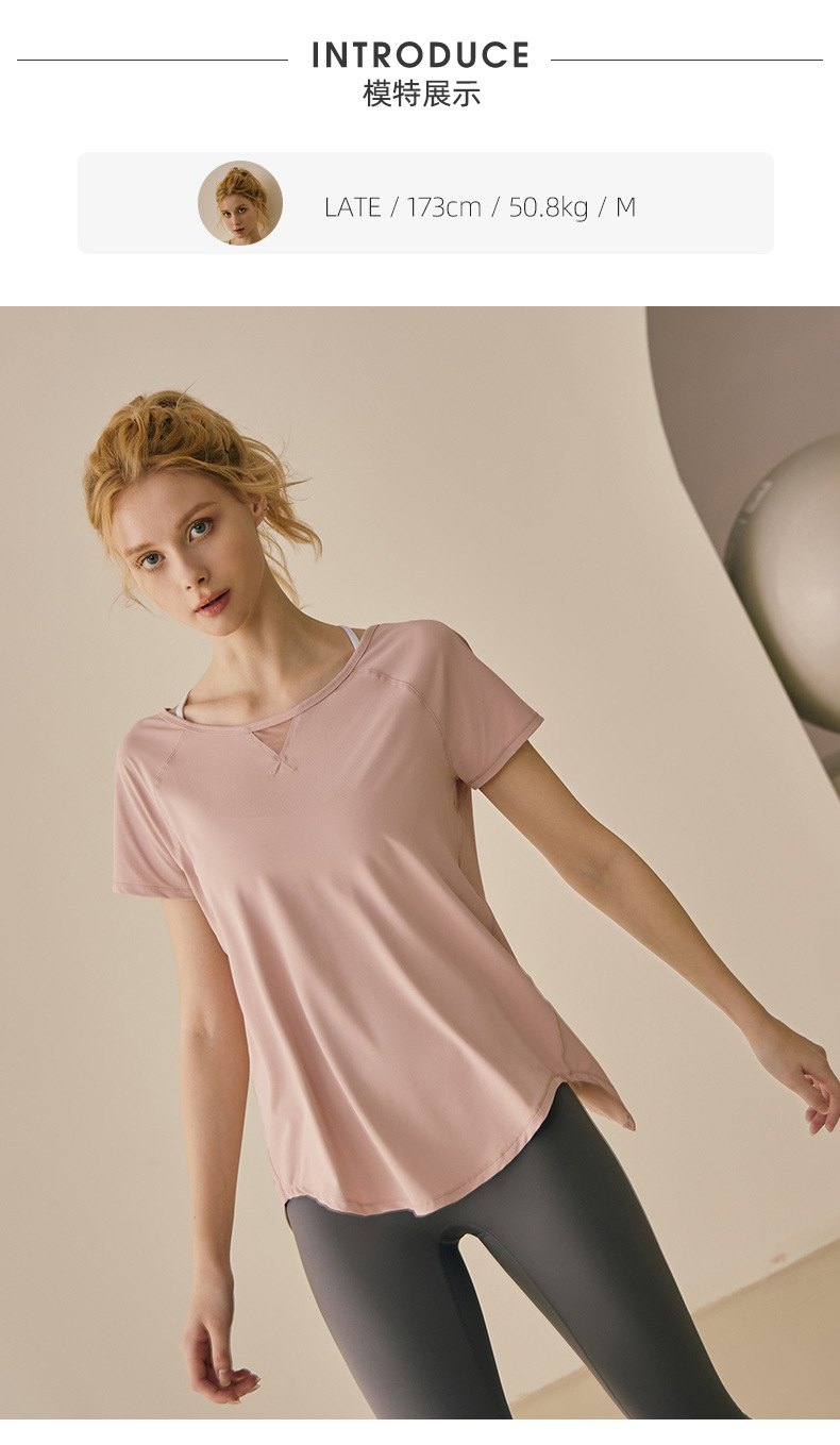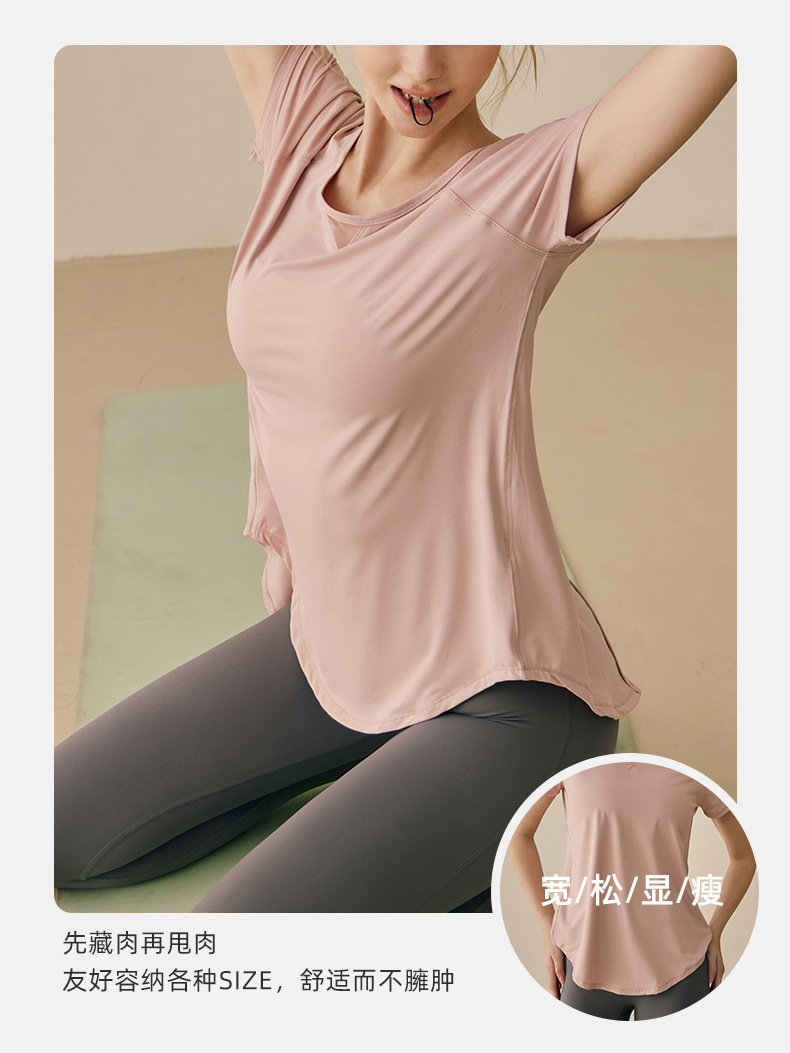 요가 의류 여성의 여름 스포츠 탑 반팔 세트 러닝 티셔츠 느슨한 블라우스 피트니스 필라테스 트레이닝 의류스토어 가기