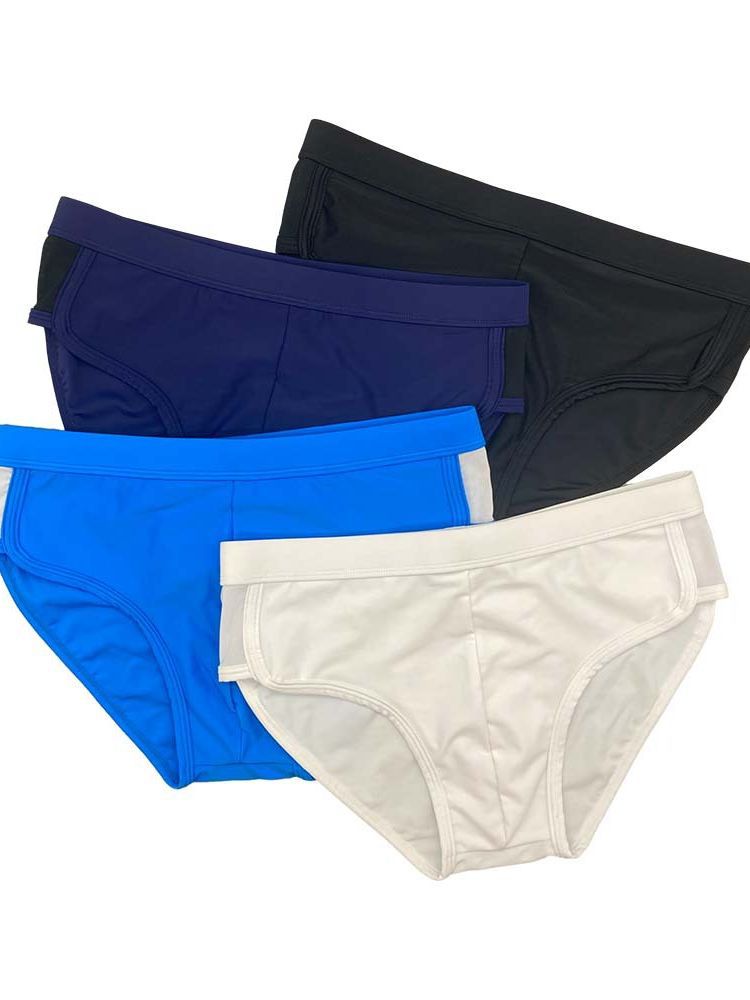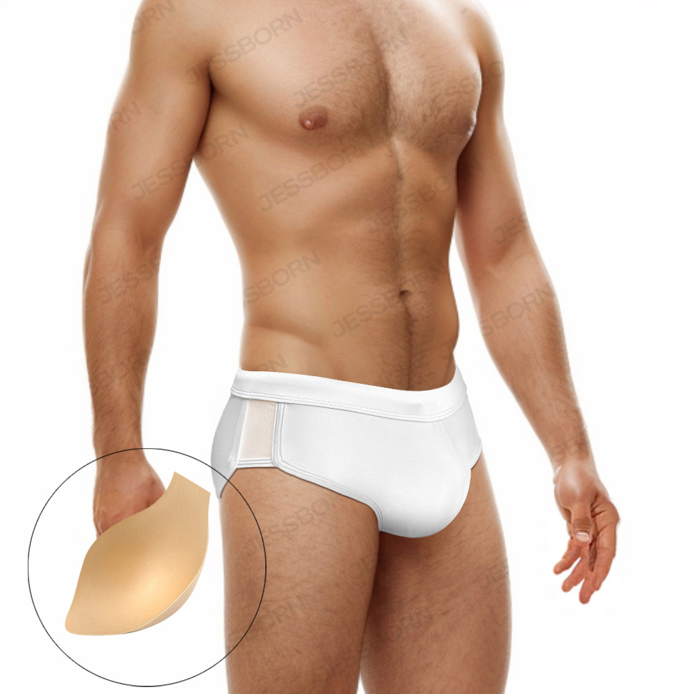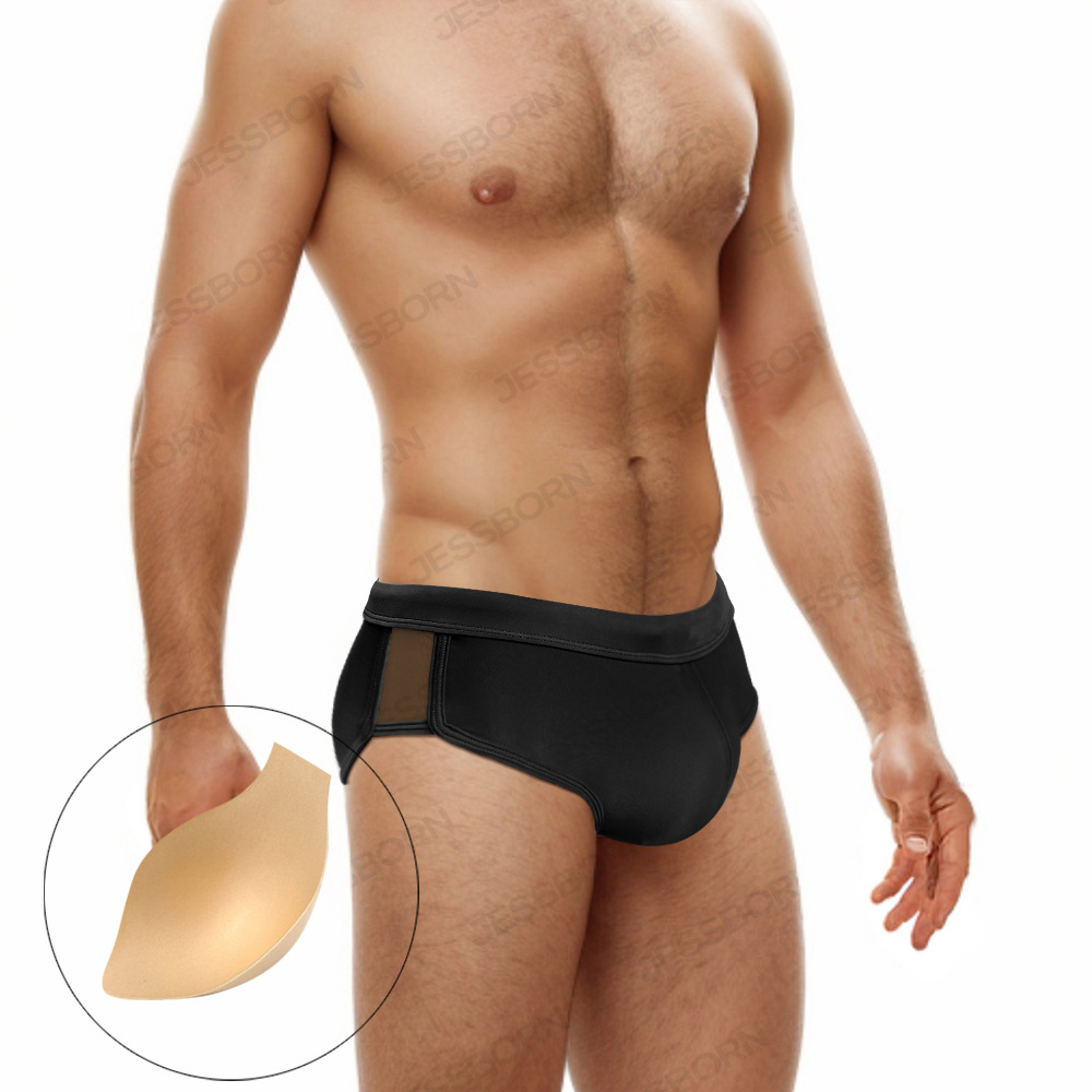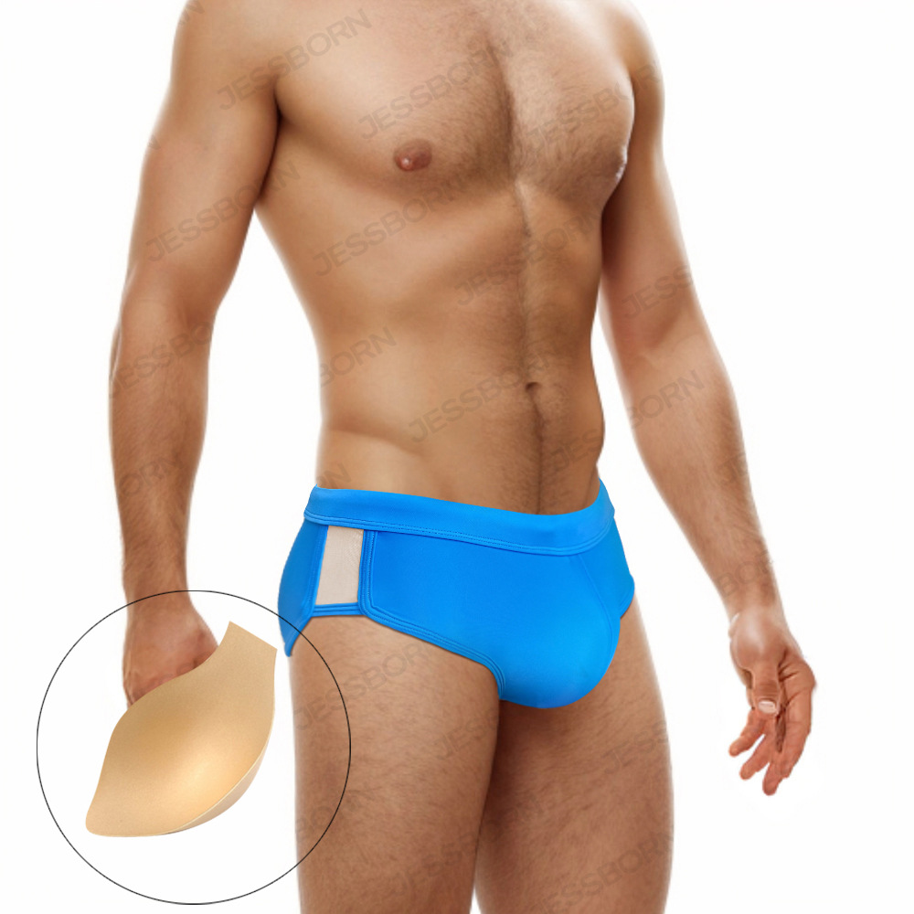 JESSBORN带罩杯男士三角泳裤两侧网纱性感低腰游泳裤欧美跨境泳装