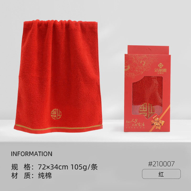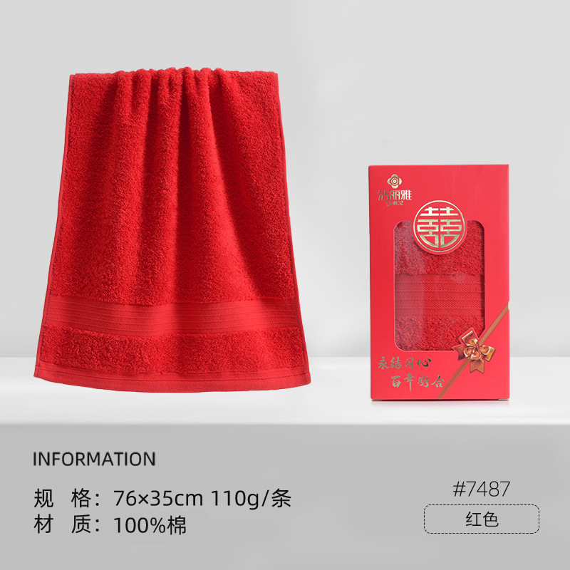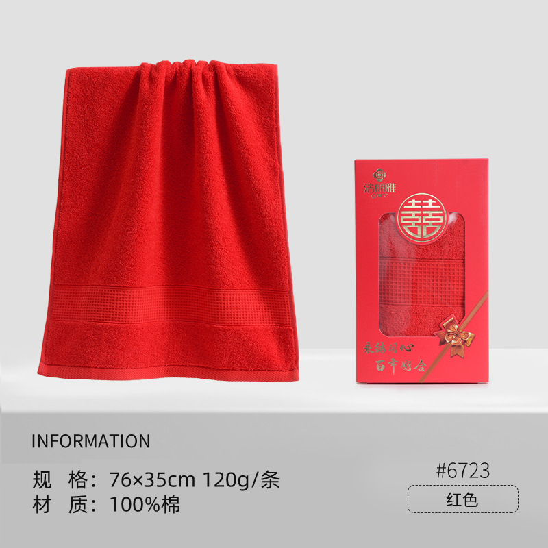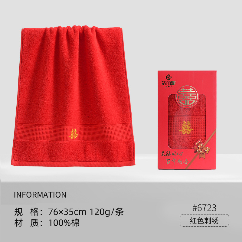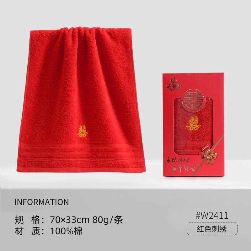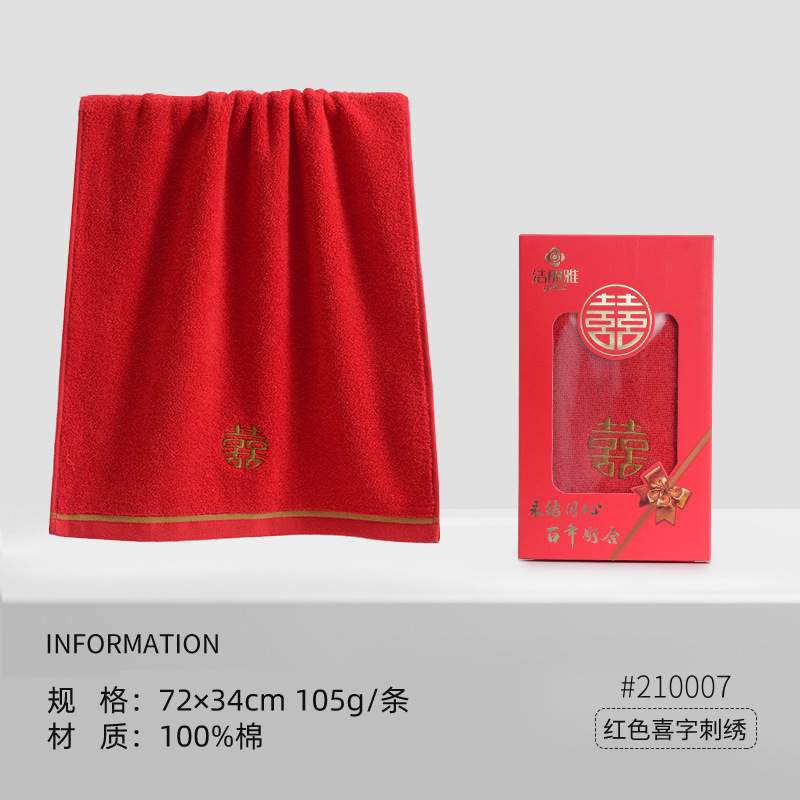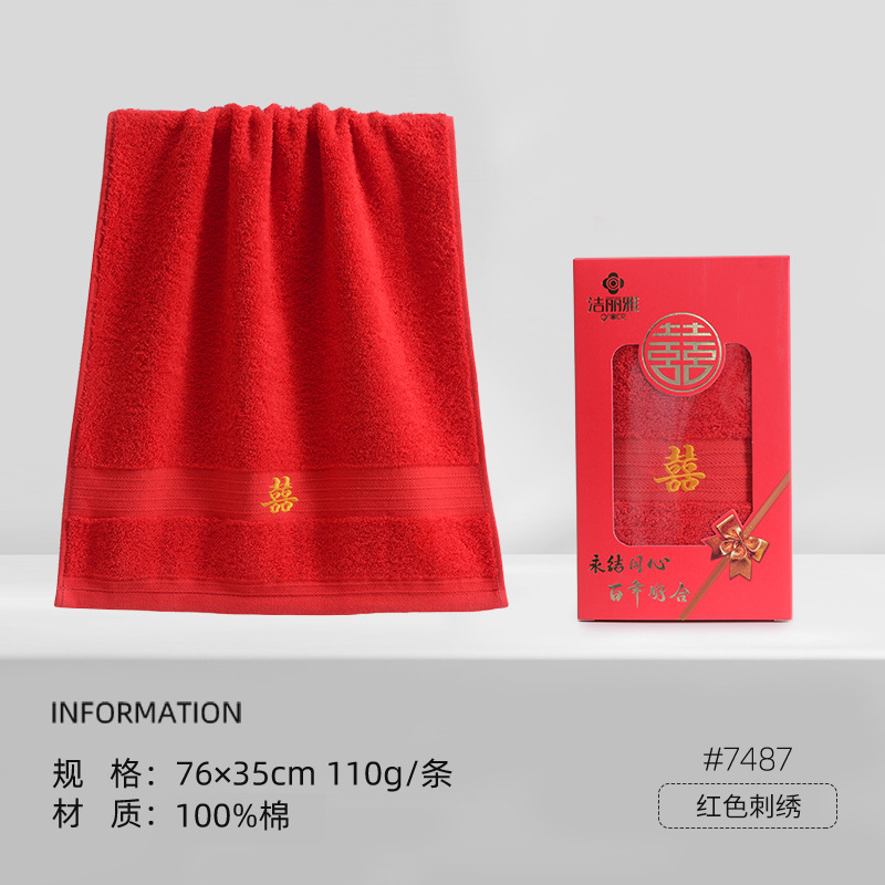 Jielia 웨딩 타올 더블 해피 웨딩 코튼 레드 가정용 웨딩 선물 레드 코튼 세차 페이스 타올스토어 가기