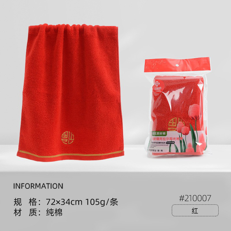 Jielia 웨딩 타올 더블 해피 웨딩 코튼 레드 가정용 웨딩 선물 레드 코튼 세차 페이스 타올