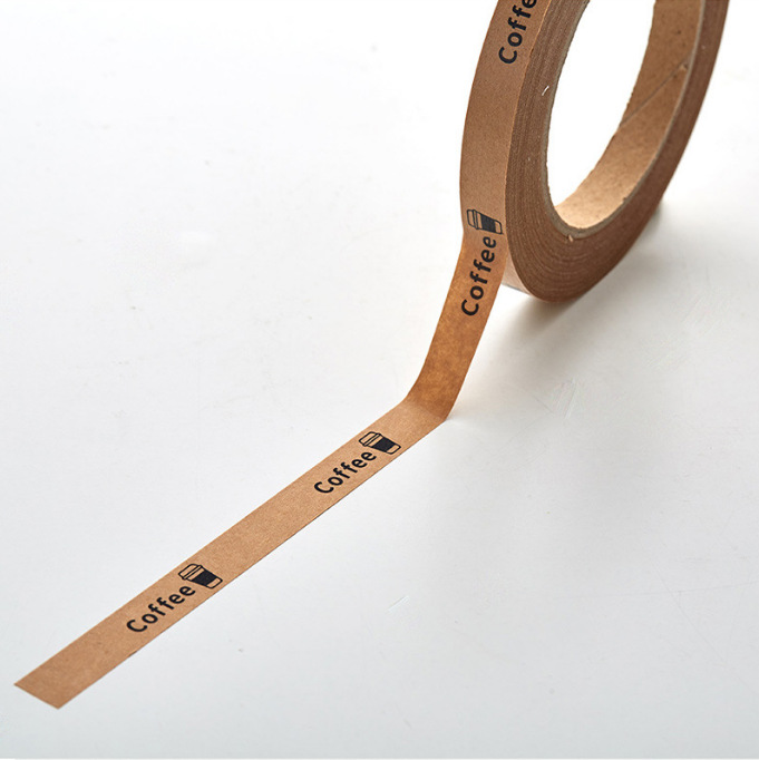 자체 접착 크래프트 종이 찢어지기 쉬운 테이프 테이크 아웃 포장 우유 차 커피 컵 뚜껑 밀봉 좁은 접착제 종이 문구 테이프