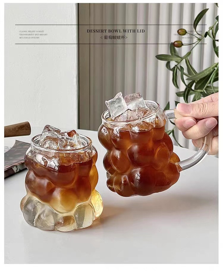 인스타일 포도 모양의 유리 물 컵 우유 아침 식사 컵 커피 컵 밀크 티 컵과 함께 높은 붕규산 유리스토어 가기