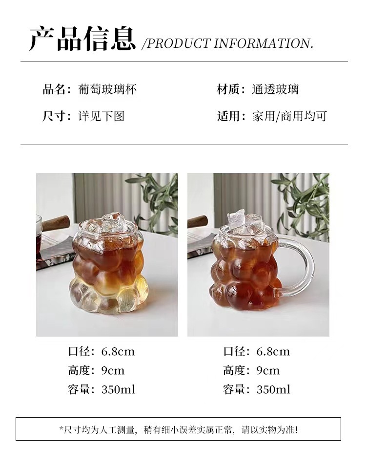 인스타일 포도 모양의 유리 물 컵 우유 아침 식사 컵 커피 컵 밀크 티 컵과 함께 높은 붕규산 유리