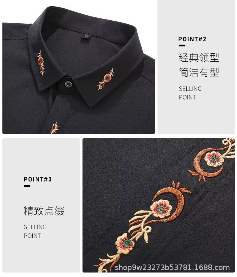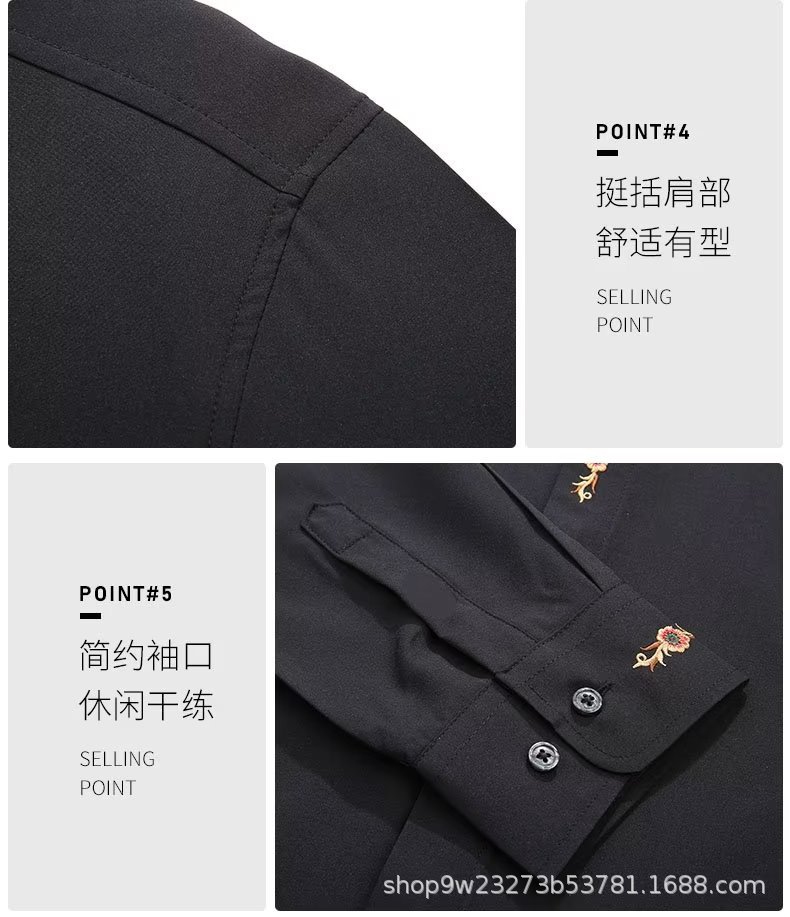 2023 봄과 가을 패션 자수 셔츠 긴팔 흑백 캐주얼 셔츠 남성용 슬림핏 비 다림질 자수 긴팔 셔츠스토어 가기