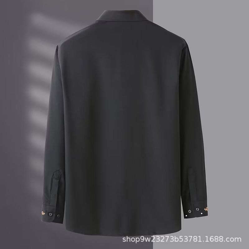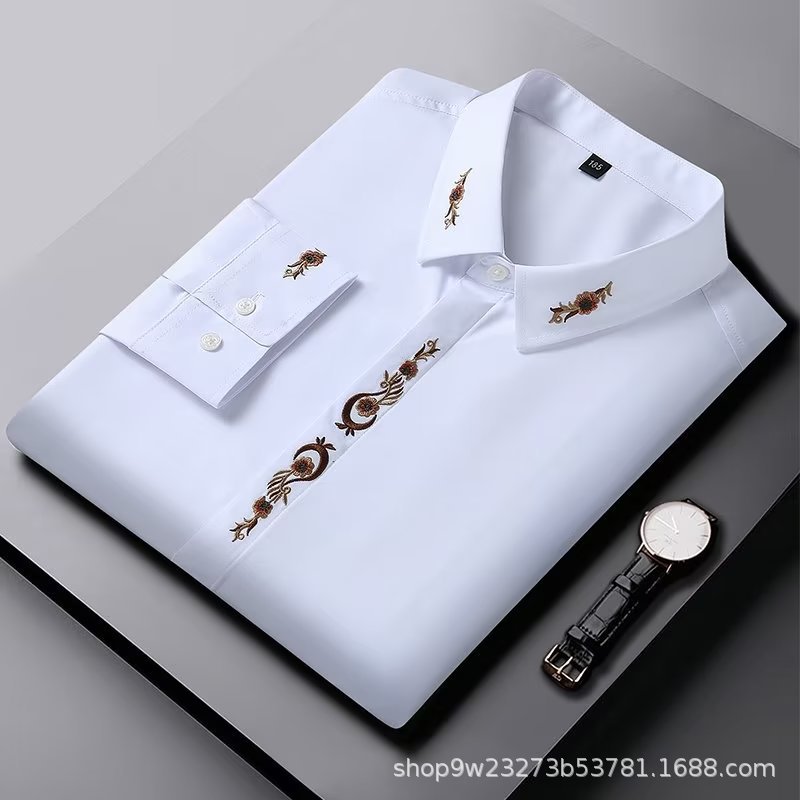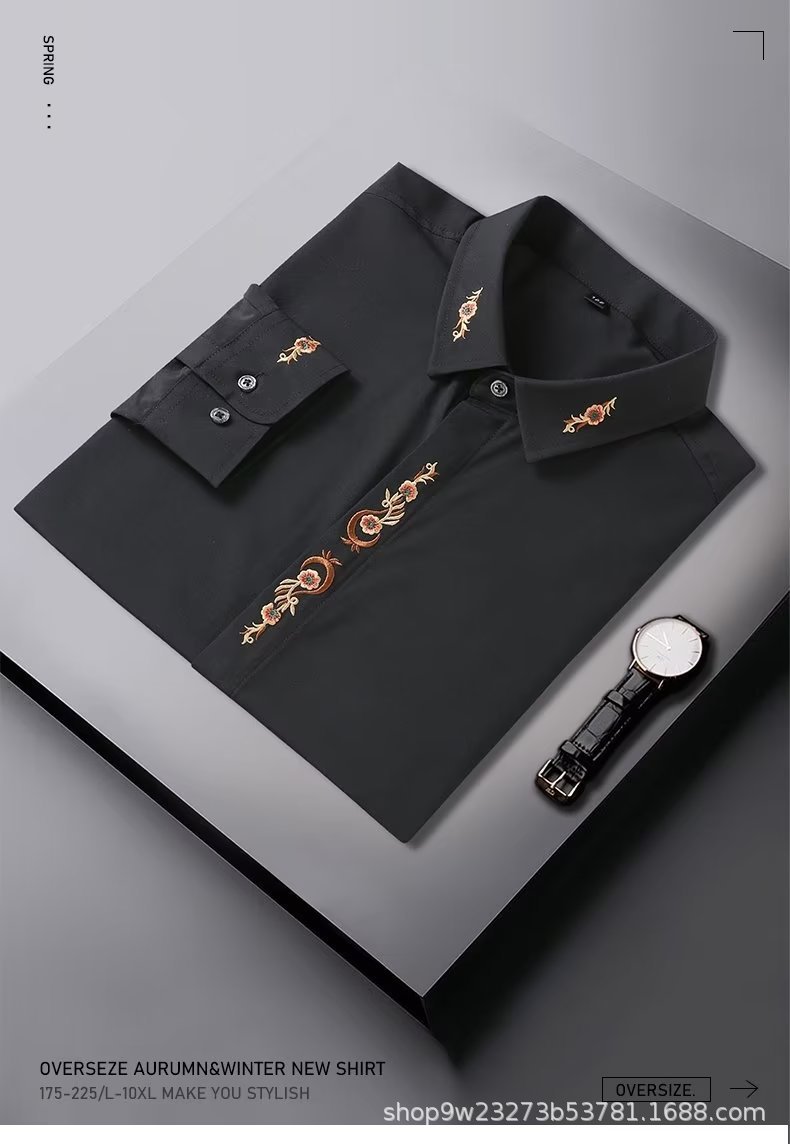 2023 봄과 가을 패션 자수 셔츠 긴팔 흑백 캐주얼 셔츠 남성용 슬림핏 비 다림질 자수 긴팔 셔츠