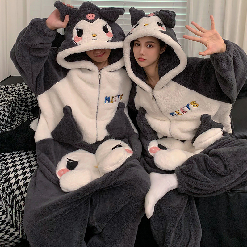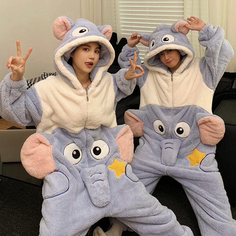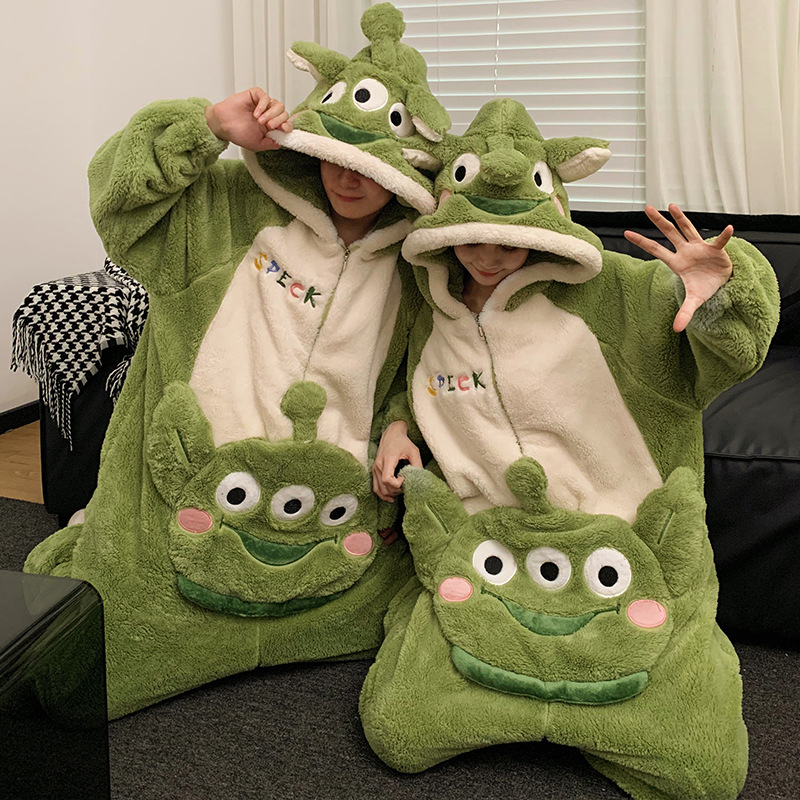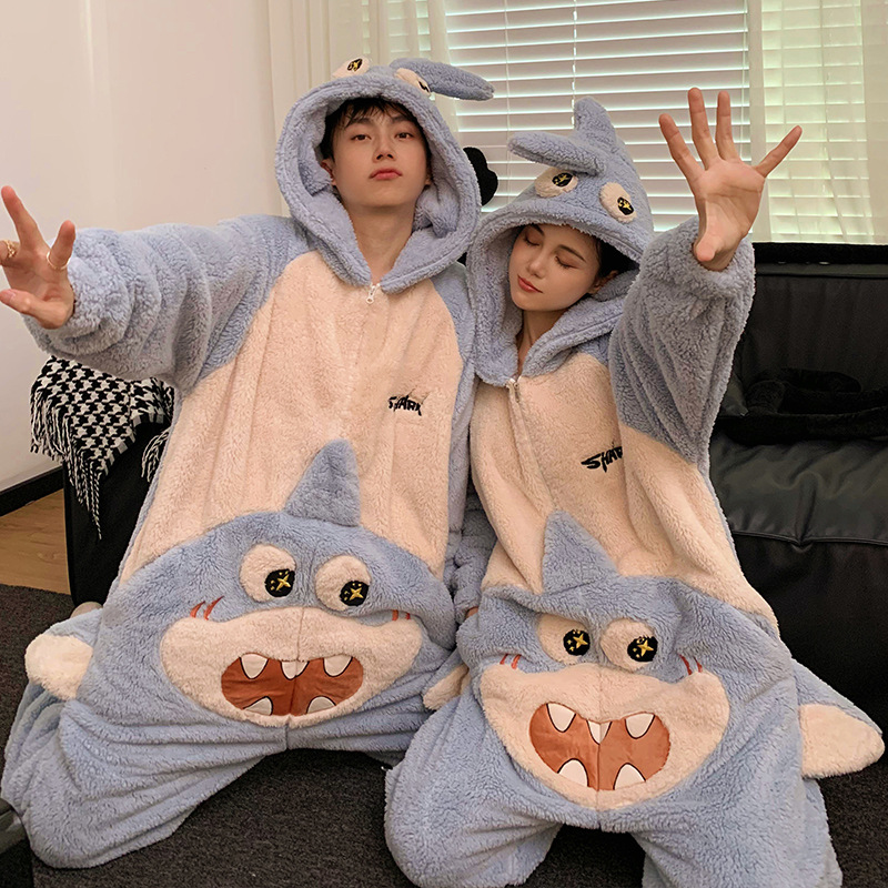 커플 잠옷 여자의 겨울 두꺼운 산호 양털 만화 공룡 귀여운 남자의 플러스 사이즈 플란넬 가정 옷스토어 가기