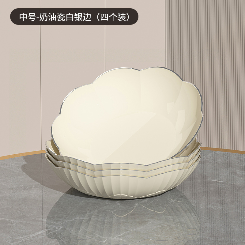• [실버 가장자리 크림 도자기 화이트] (중간-4 팩)